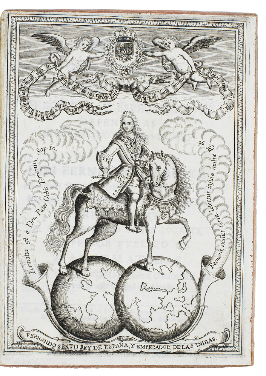 Manila, Nicolas de la Cruz Bagay, 1758. 4to. With engraved equestrian portrait of Ferdinand VI, King of Spain and Emperor of the Indies as a frontispiece. Contemporary salmon-coloured silk over flexible boards, preserved in modern portfolio. [4], 4 ll.