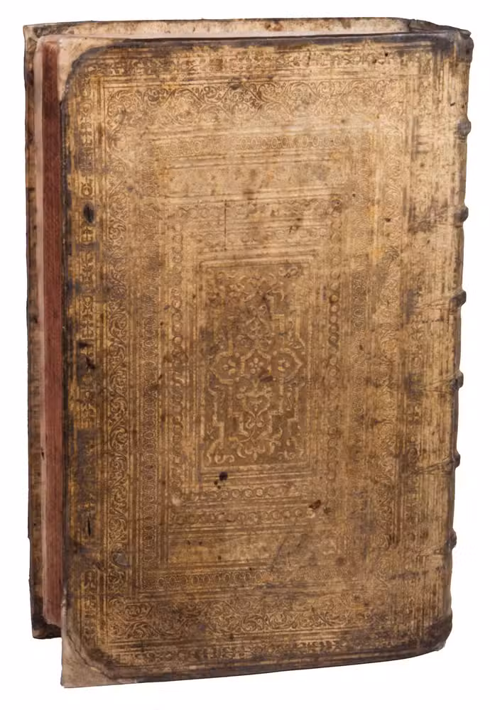 With the bookplate of German auctioneer and book dealer H. G. Gutekunst (ca. 1865-1910) mounted on the front pastedown, an ownership's stamp and annotation on the recto of the first free flyleaf, and a contemporary annotation on the title page. The vellum is somewhat soiled and rubbed, affecting the clarity of the blind-tooling on the front board, the corners of the boards have been restored with later vellum. The end papers are slightly foxed, some of the leaves are slightly frayed. Otherwise in good condition. Ad 1: Darlow and Moule 4667; USTC 1508066, 6702525 (2 copies); cf. Darlow and Moule 1422 (Antwerp polyglot); Ad 2: Darlow and Moule 5117; USTC 6700273 (3 copies).