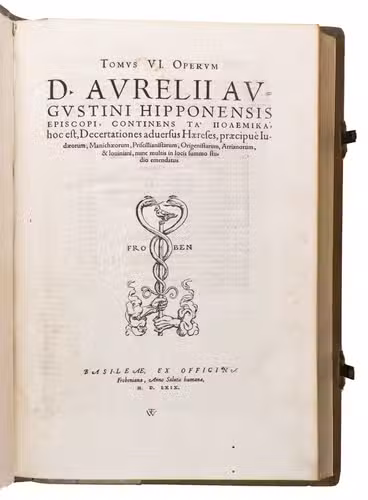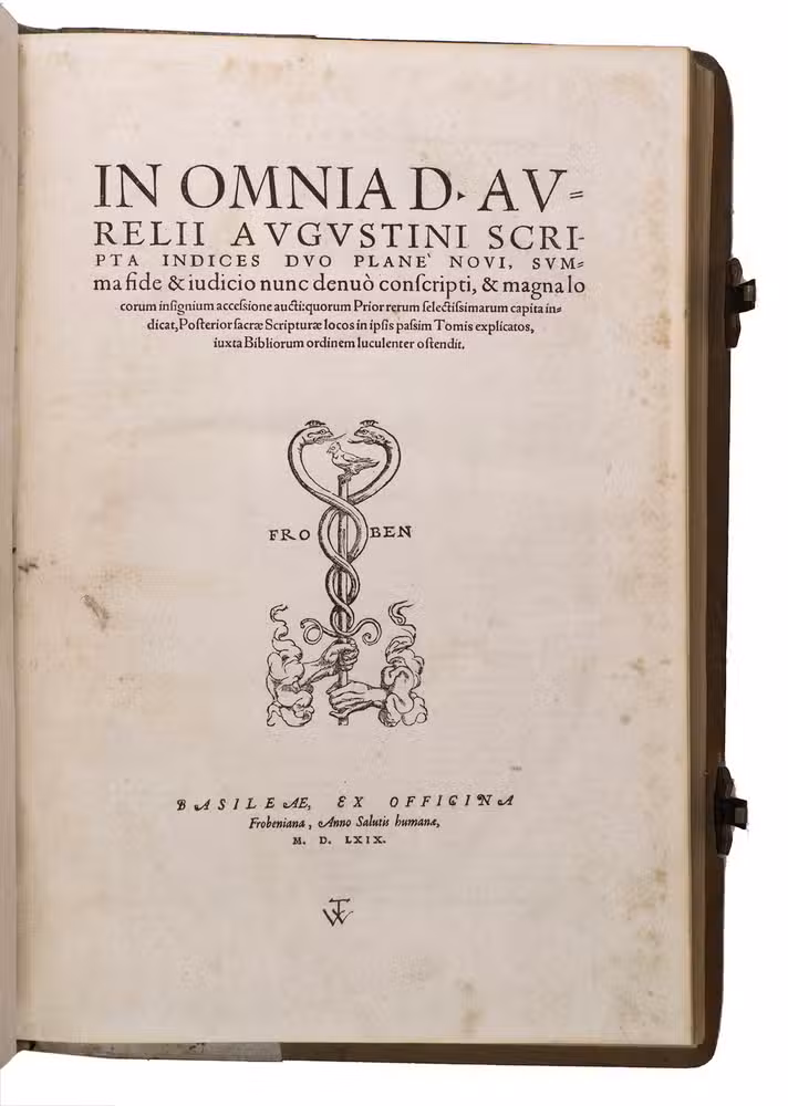 A complete and uniformly bound set of the monumental edition of the complete works of Saint Augustine of Hippo, printed by the celebrated Froben press. This edition follows the editorial tradition established by Erasmus and Johann Froben in the early 16th century and reflects the enduring influence of Augustines thought on early modern theology.