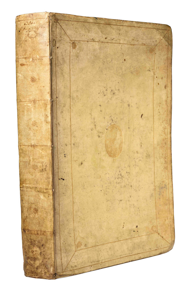 Amsterdam, Joan Blaeu, 1647. Folio. With an engraved title-page, an engraved portrait of Johan Maurits van Nassau, 25 double-page engraved maps and plans, and 31 double-page engraved plates. Further with a woodcut printer's device on the title-page. Contemporary vellum, upper cover ruled in blind with blind-stamped floral vignette in center. [12, including title-page, frontispiece and portrait], 340, [8] pp.
