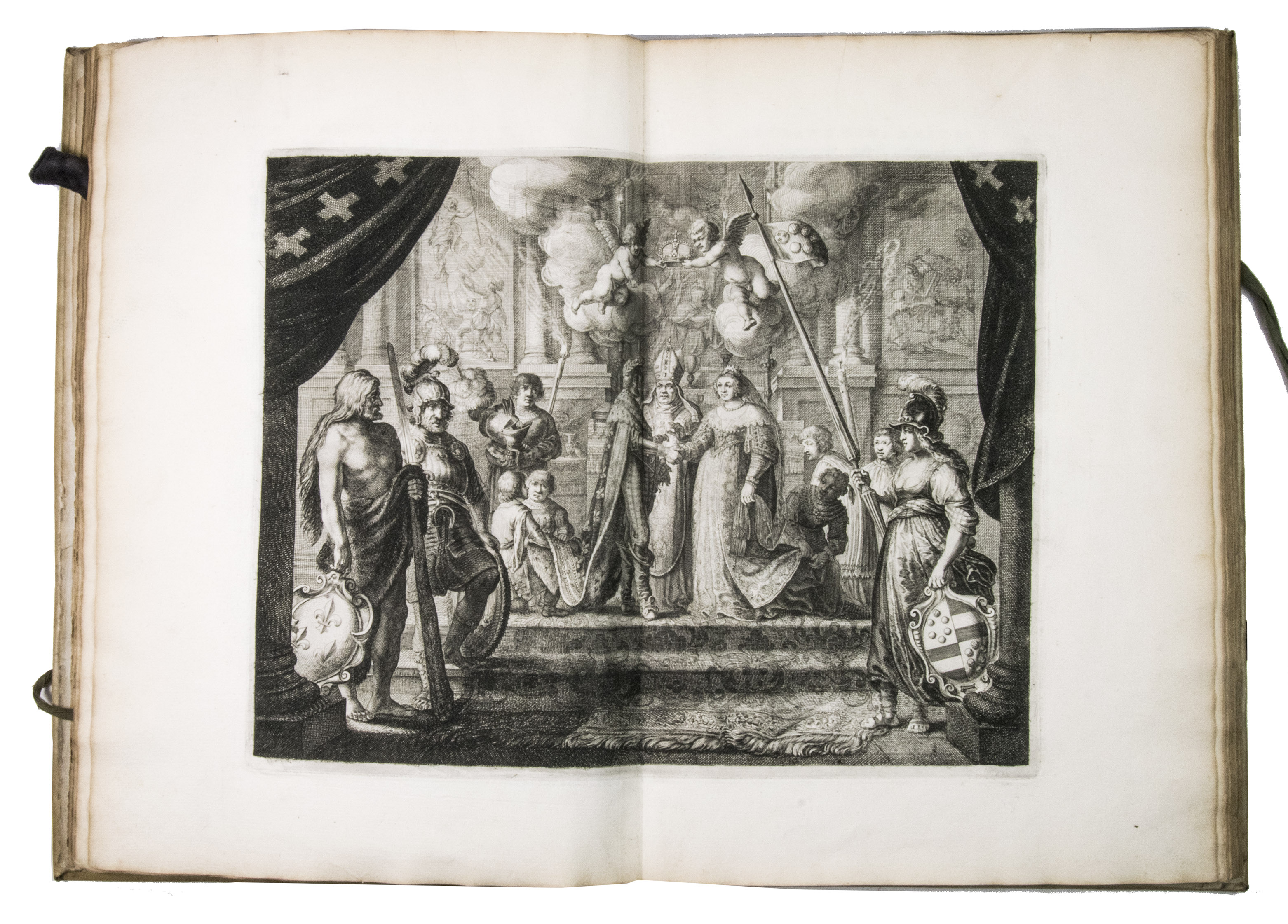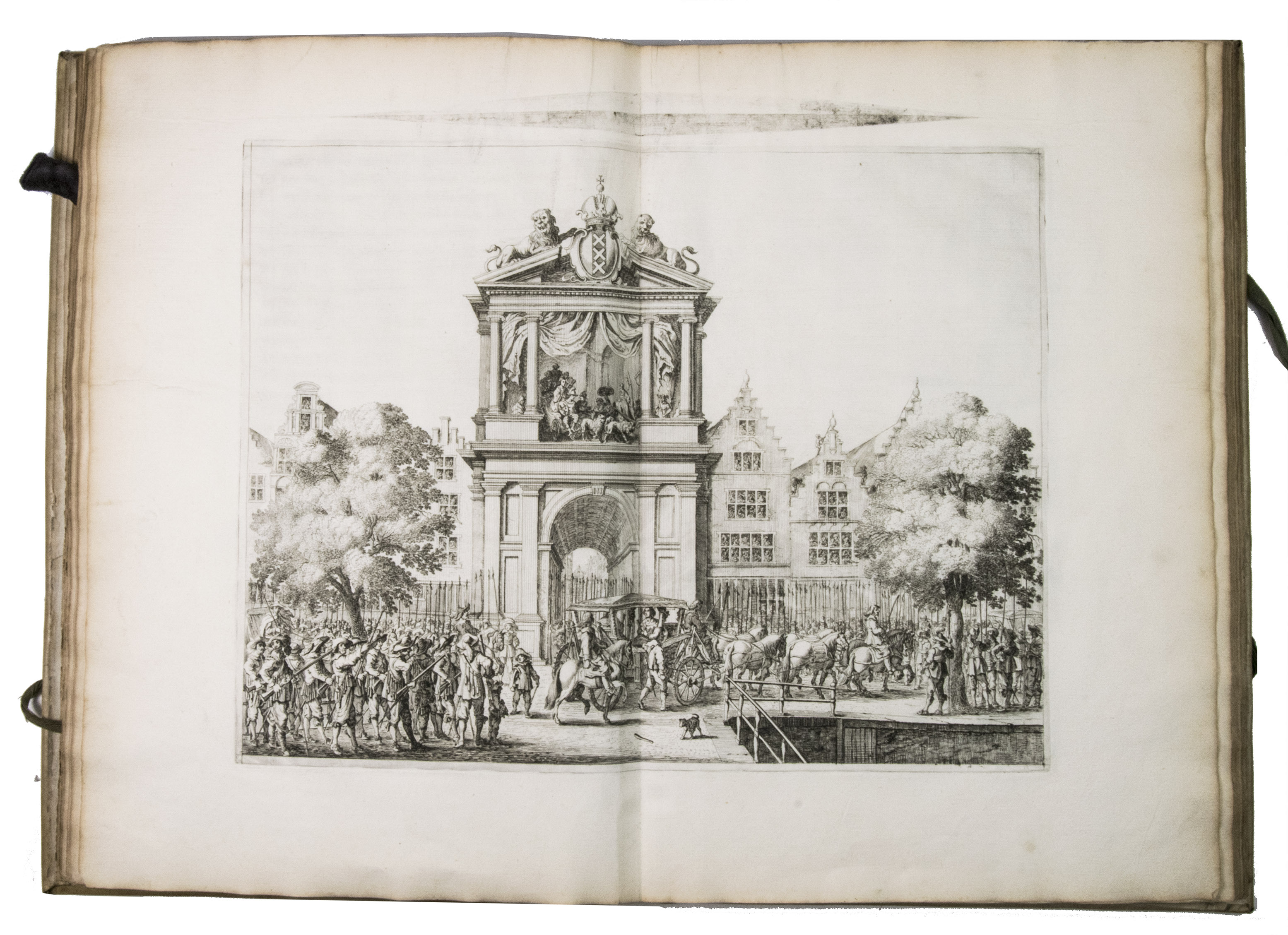 The vellum shows mild traces of use, with a few scratches, and a bumped upper corner on the back board. The first few leaves are slightly soiled in the margins, the first few leaves and pages 17-25 are slightly frayed. Otherwise in good condition. Berlin Kat. 2950; Hollstein XIV, Nolpe 86-94, and XXIV, Saverij 144 a-h (the plates); Landwehr, Splendid ceremonies 109; Lipperheide 2665; Muller, Nederlandse historieplaten 1793 & supplement 1793; Snoep, Praal en propaganda, pp. 39-76; STCN 85007293X (11 copies); Vinet 489.