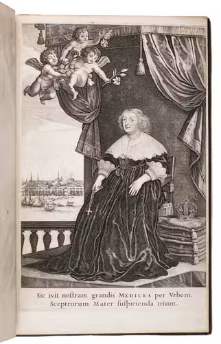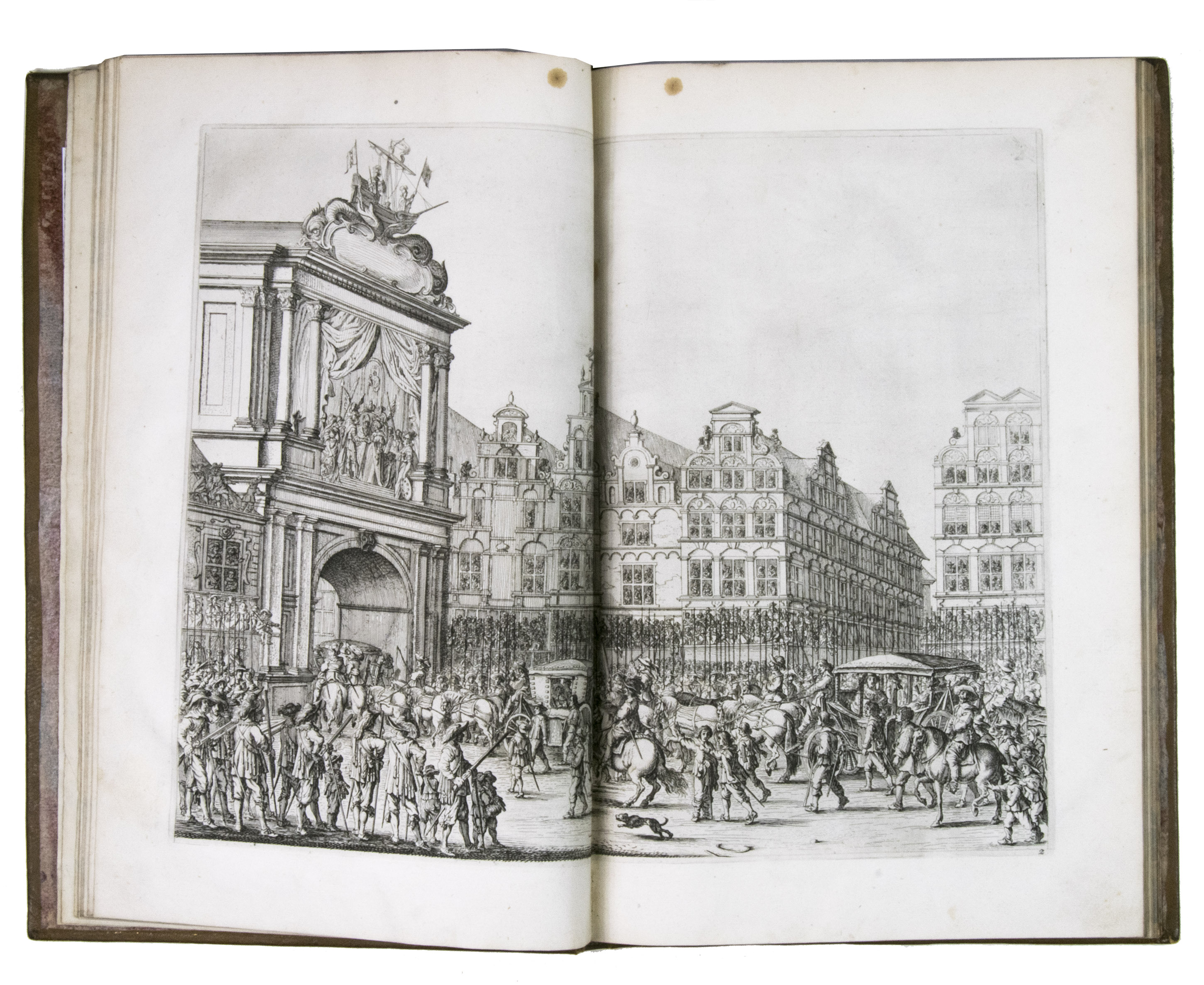 First edition in French of this superb Dutch festival book, celebrating the arrival of Marie de' Medici (1575-1642), queen-mother of France, in Amsterdam. Published simultaneously in French and Latin, it is the first official description of a royal entry in the Northern Netherlands. Marie de' Medici's ceremonial entrance was an important moment in the history of Amsterdam. Although her presence was a politically sensitive issue, she was received with great honour. The present work, complete with all 17 engravings, is a beautiful visual and textual homage to this event.