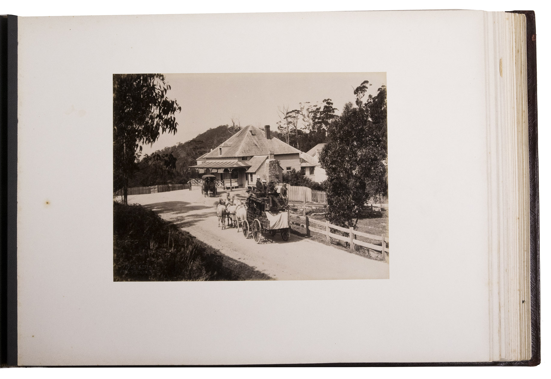 Hobart, [ca. 1895]. Oblong folio (30 x 41cm). With 32 original photographs (ca. 17 x 23 cm), pasted on paperboard. Later gold-tooled red morocco.