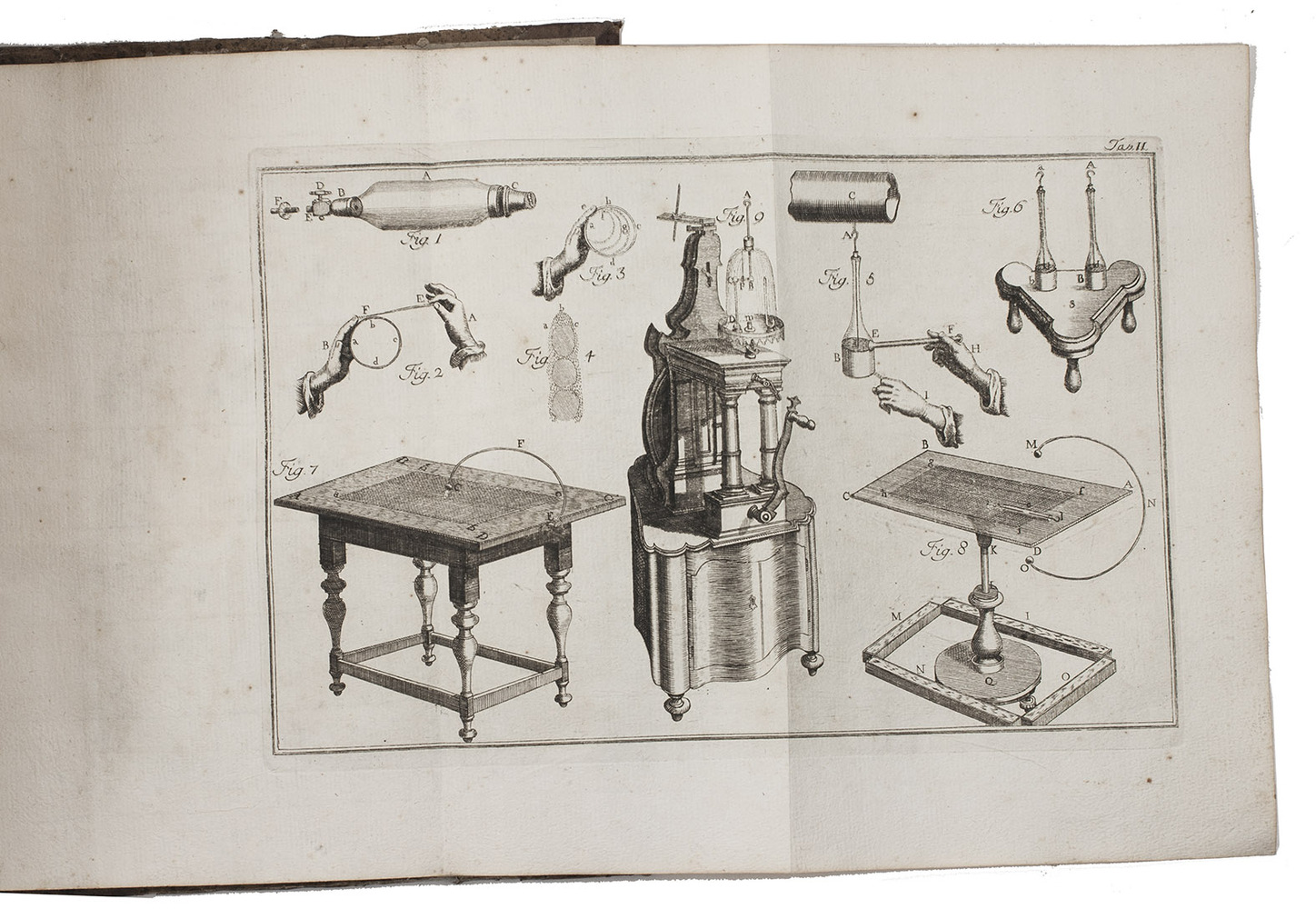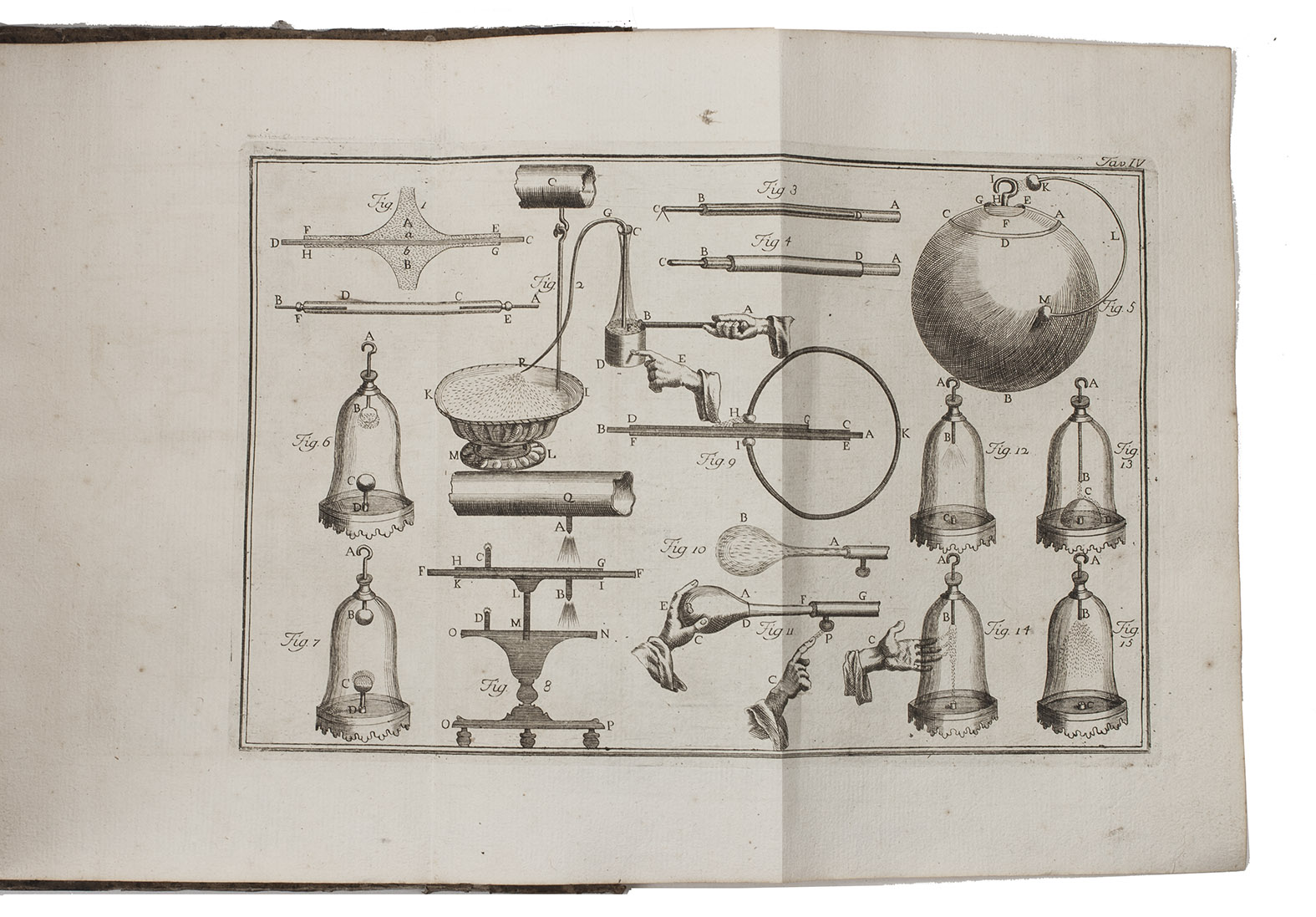 Ad 1: First edition, in the original Italian, of "Beccaria's last major contribution to the science of electricity" (DSB). It treats the theory of artificial electricity, especially in conducting bodies, deduced from the circulation of electricity in an ordinary apparatus. Beccaria explains and enlarges on Franklin's one-fluid theory of electricity. It contains descriptions of many experiments, with accompanying illustrations on the 11 engraved plates. It was translated into English, on Franklin's recommendation, in 1776.