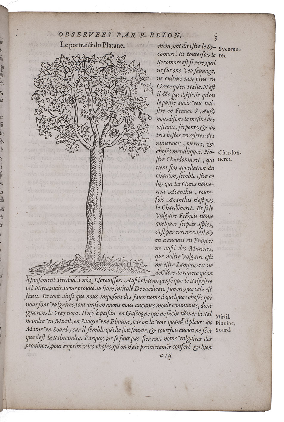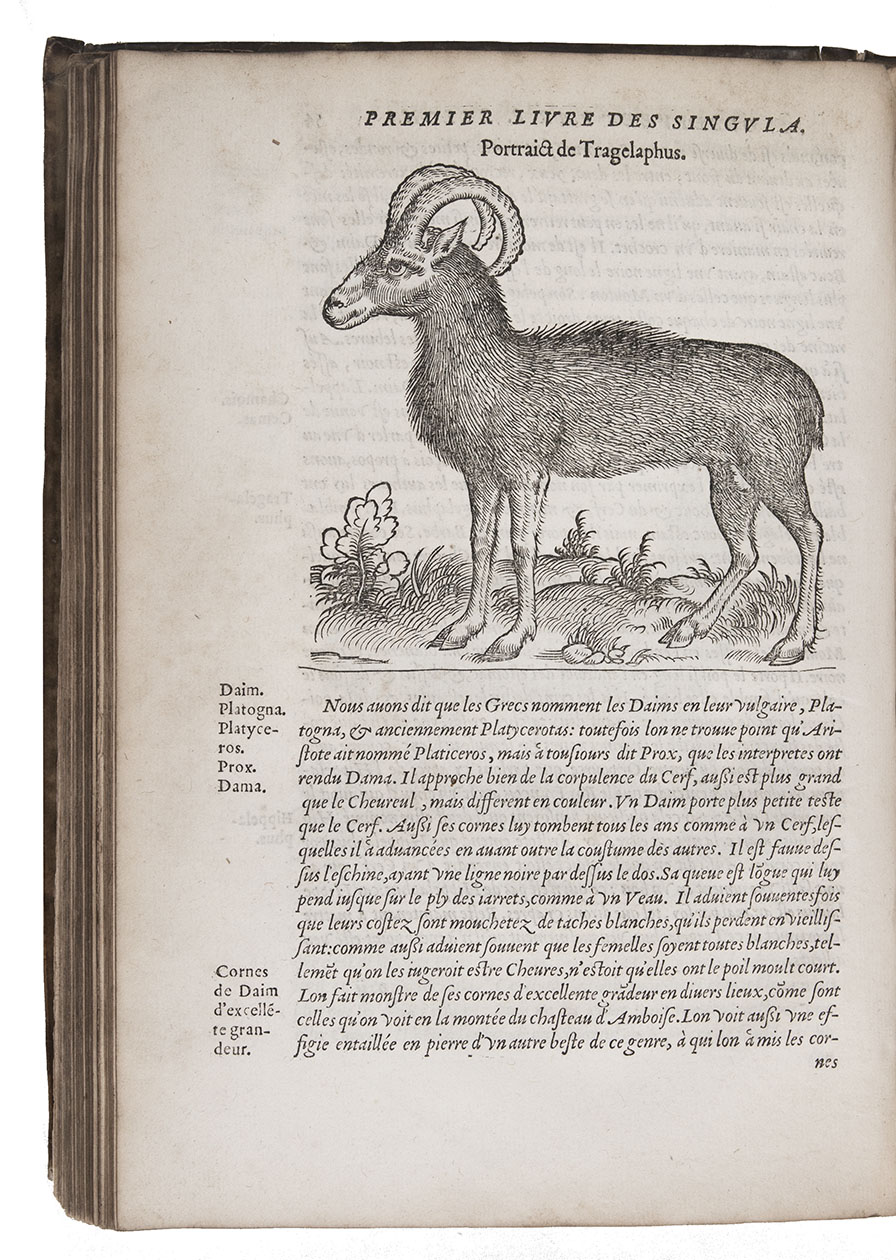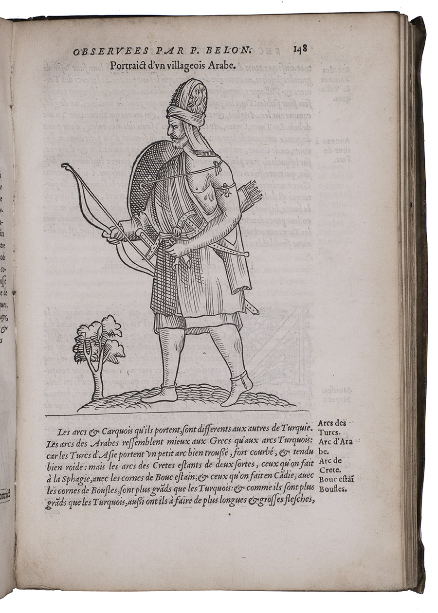 Third edition of Belon's Observations, the fruit of his extensive travels in Greece, Turkey, Egypt, Palestine, Lebanon and Syria from 1546 to 1549. Piere Belon (ca. 1518-1564), famous for his works on ornithology, was attached as naturalist to the French embassy to the Ottoman Empire, aimed at convincing Suleiman the Magnificent to join forces against Charles V. Unlike many contemporary travel writers, Belon does not elaborate on extraordinary travel adventures, but rather limits himself to detailed observations on mammals, fish, snakes, birds, plants and the manners and customs of the peoples he encountered, only commenting on what he had witnessed himself.
