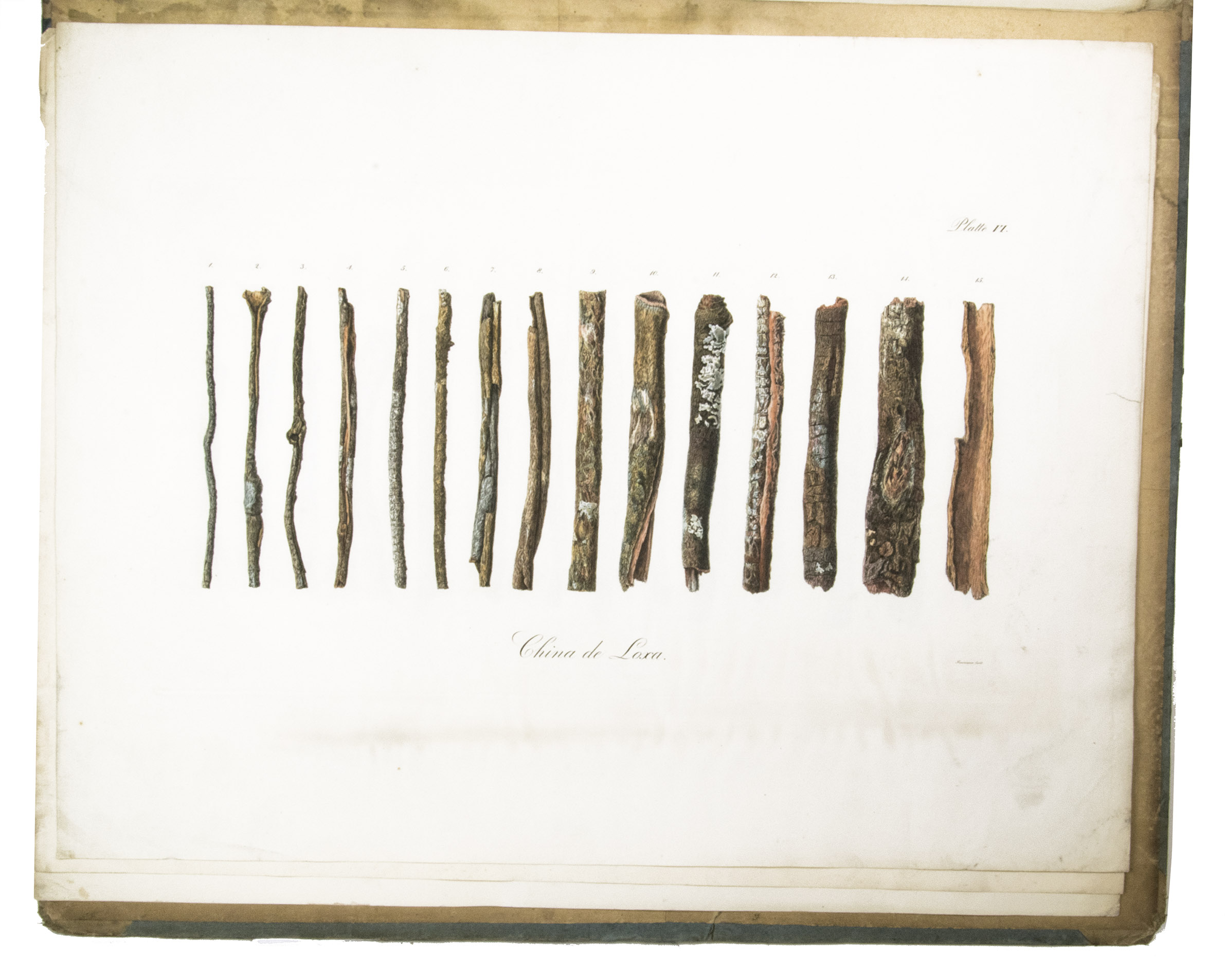 First and only edition of this botanical work on cinchona bark, very rare with all ten tables present. Heinrich von Bergen (1792-1836), who was a "Droguerie-Makler" (drug-broker) at Hamburg, gives a state of the art description of the botanical, economic and pharmaceutical history of cinchona bark. The work opens with a 72-page long list of reference literature. Among the publications are those by Pelletier and Caventou, who were the first to isolate cinchonine and quinine in 1820 (DSB X, p. 497). The 8 coloured plates depict different types of cinchona bark (seven plates) and a Peruvian mountain with cinchona trees (plate 8) titled '' Geographie der Chinchonen'' after the plate by Alexander von Humboldt.