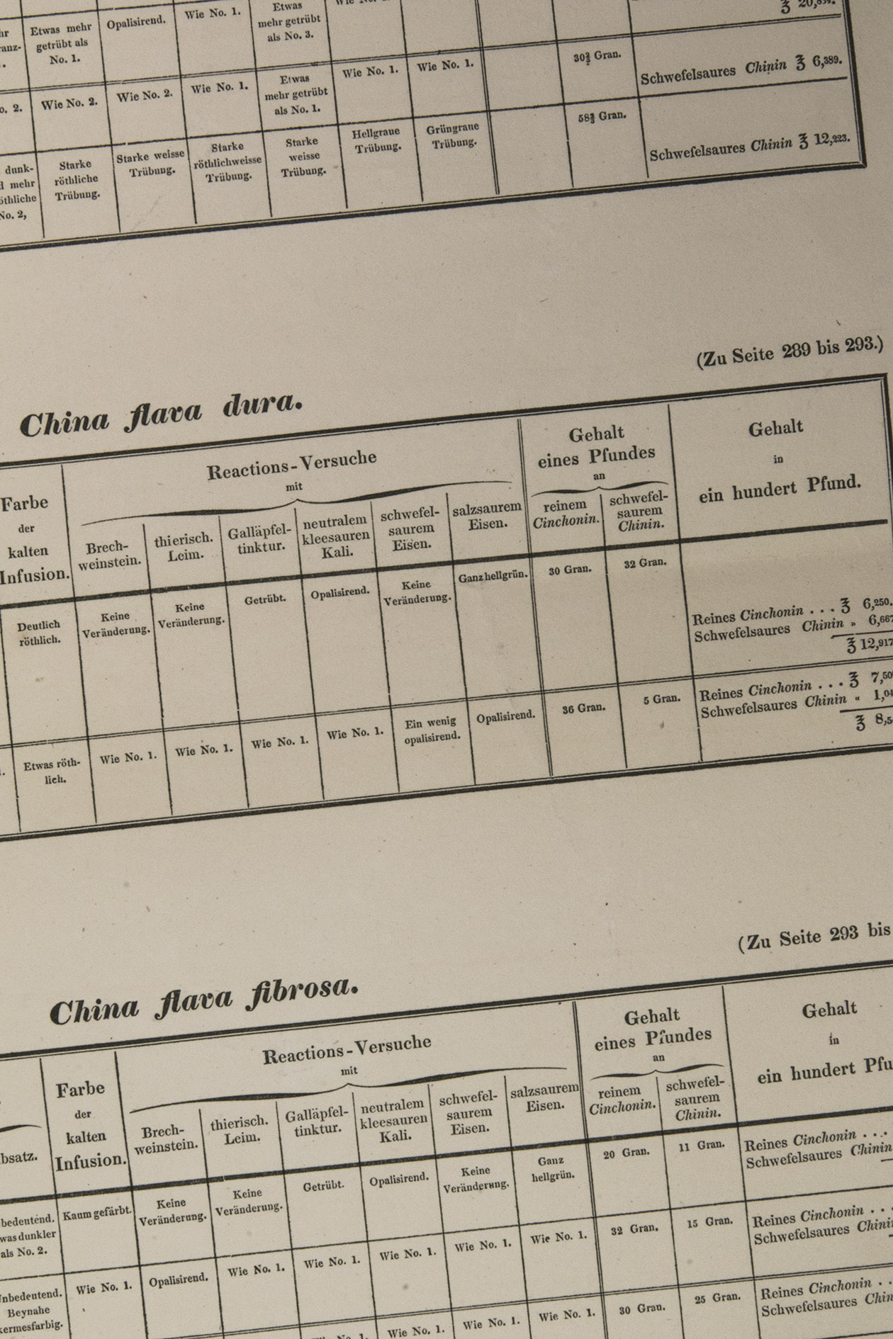 Our copy contains all ten tables with test results of the extraction of cinchonine and quinine from different types of cinchona bark. These tables are lacking in the copies of the British Museum and the Wellcome Library. In the copy in the library of the Arnold Arboretum, the book is contains xii, 348 pages, accompanied by an oblong atlas of eight coloured plates and eight [!] tables. The explanation of the tables with their highly important conclusions (pp. 331-341) was written by Christian Heinrich Pfaff (1773-1852), a renowned professor of medicine, physics and chemistry at the University of Kiel (Poggendorf II, cols. 425-428). It is followed by an article on a procedure to extract cinchona salt from chinchona bark titled Art der Darstellung der Chinasalze aus den Chininrinden by H.L. von Santen.