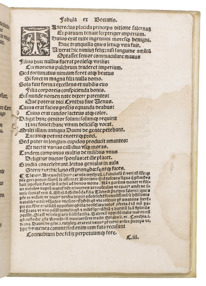 Parijs, Denis Roce, [ca. 1505]. 4to. With a printer's device on the title-page, and 20 decorated woodcut/ metalcut intitials. Later vellum. [30], [1 blank] ll.