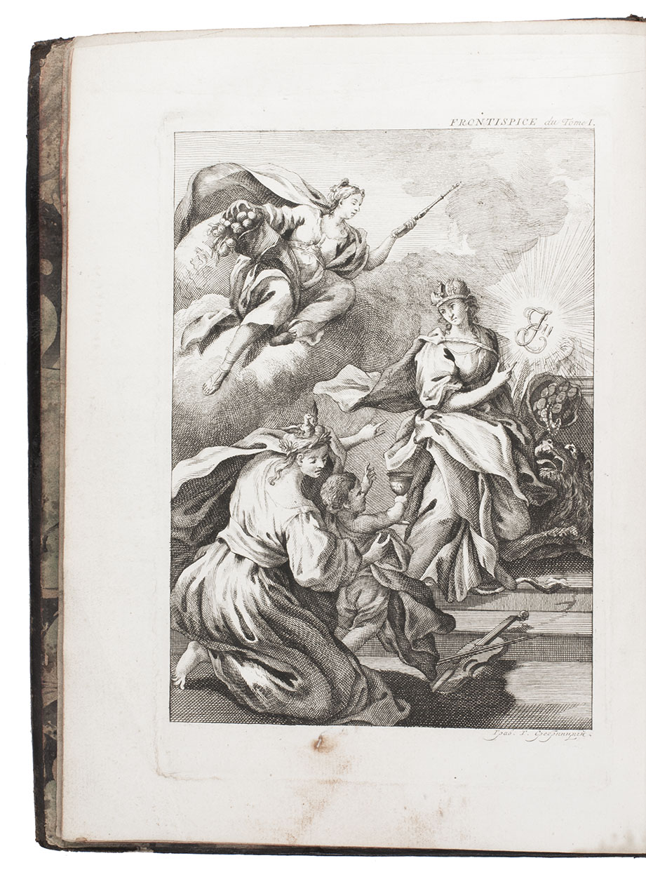 Reddish brown stains on half-title, frontispiece and title-page and a water stain in the last few leaves. Good copy. Binding rebacked and with a few other restorations, but still in good condition. Cioranecu 38333; V. Gestel-Van het Schip 14; Mortier & Mat, Diderot et son temps 196 note; STCN (4 copies).
