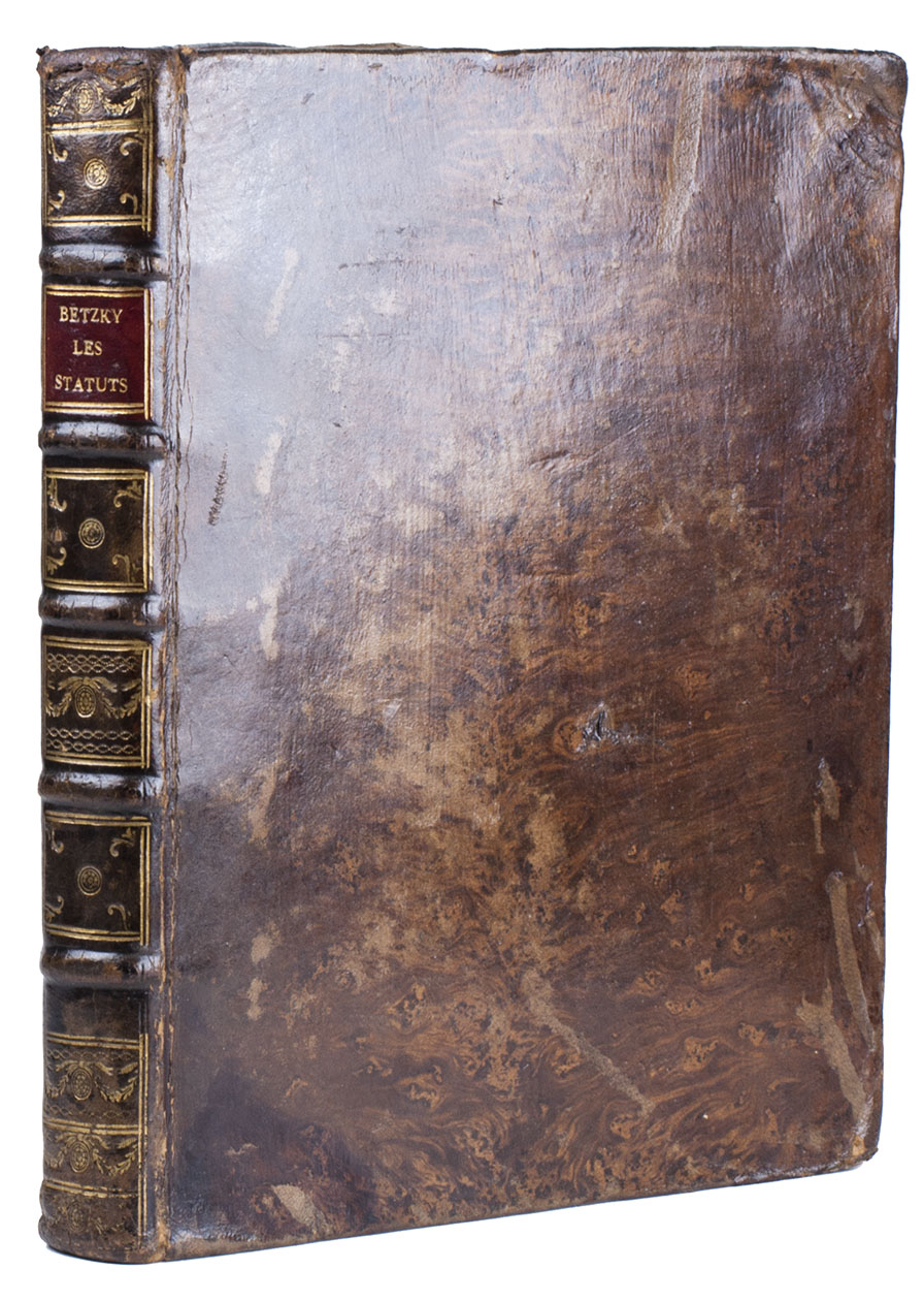 First edition in French of a collection of texts concerning education by the Russian school reformer Ivan Ivanovitch Betzky (1704-1795), several commissioned by Catherine the Great, who was rumoured to be his biological daughter. The publication was translated from the Russian by Leclerc and edited by the famous French encyclopaedist Diderot during a stay in The Hague.