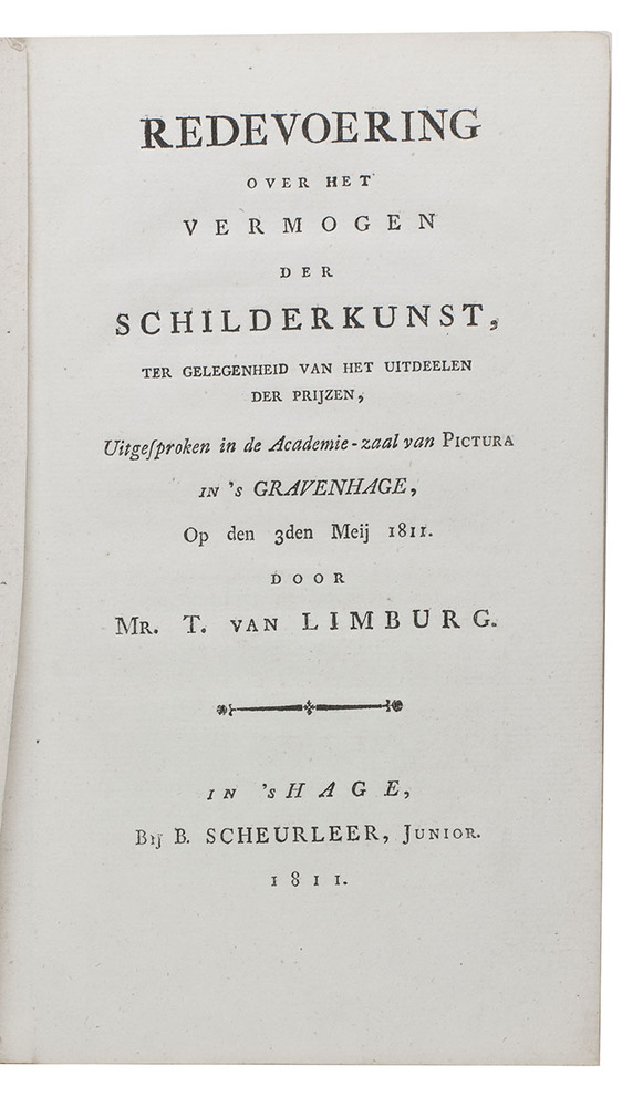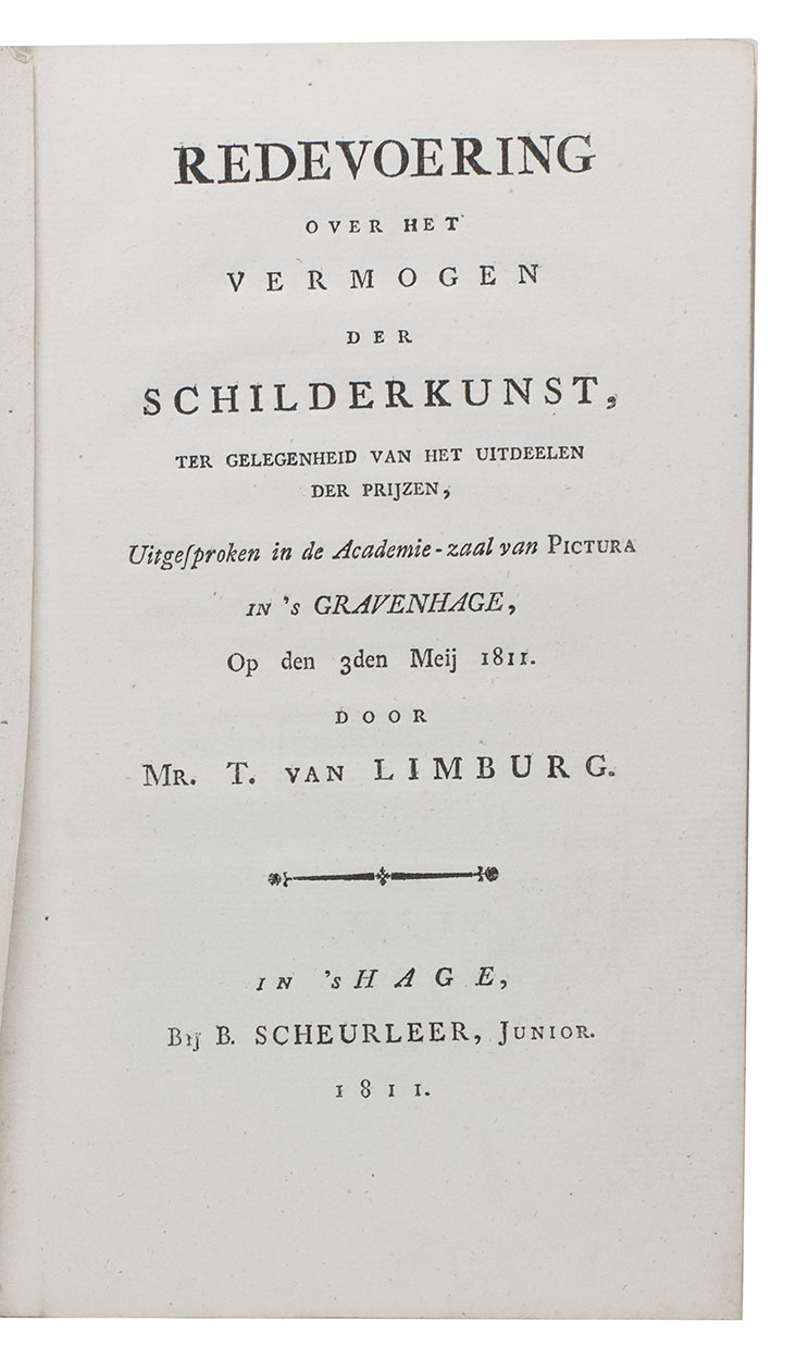 (4). LIMBURG, T. van. Redevoering over het vermogen der schilderkunst ter gelegenheid van het uitdeelen der prijzen... 1811.