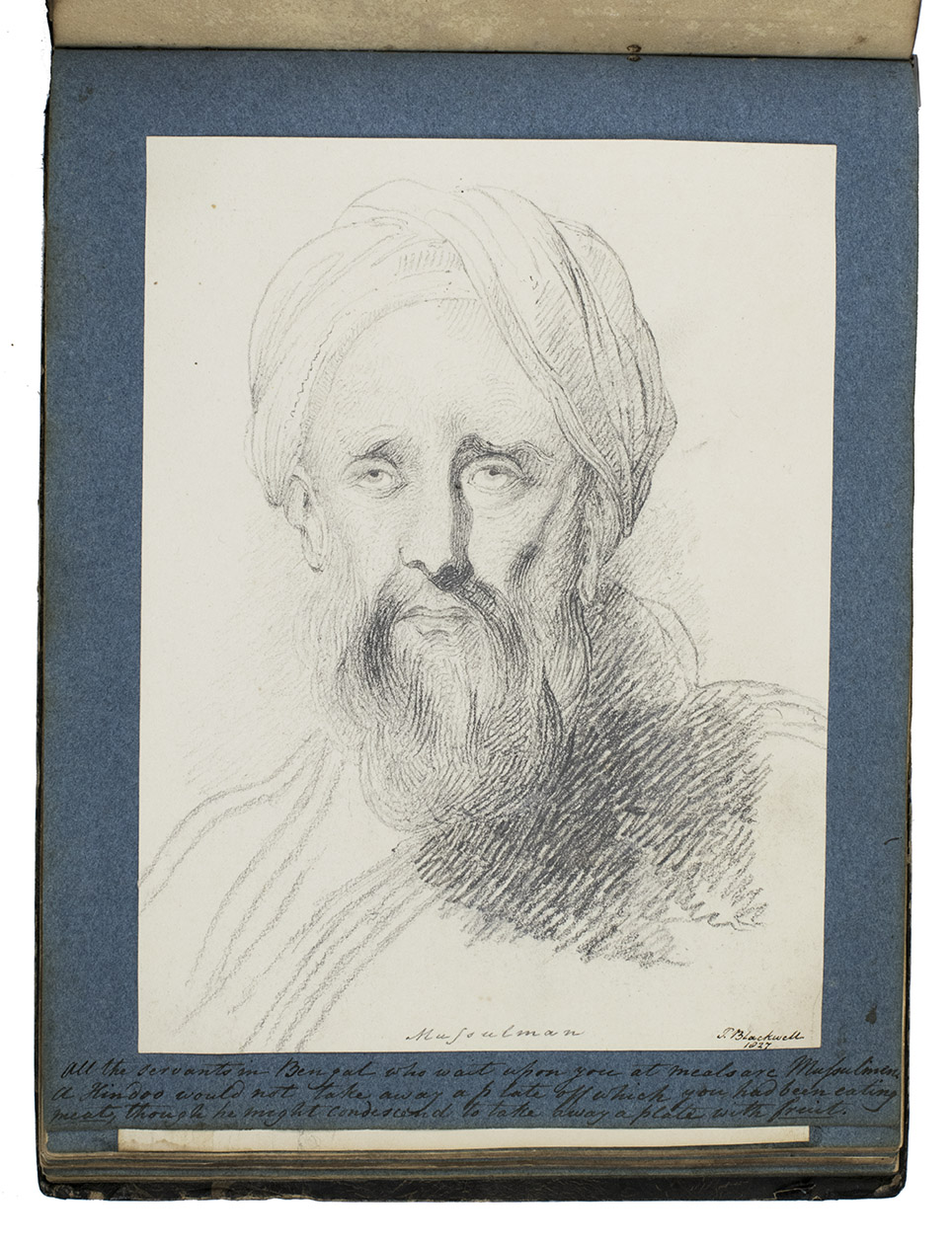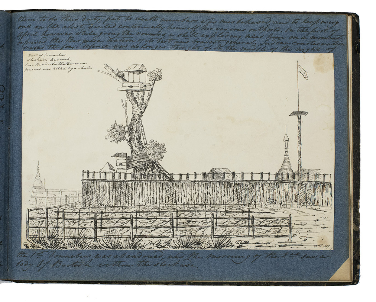 With an owner's inscription on the front paste-down; "Lieut. Blackwell 13th Light Infantry. Indian, Burmese and Swiss Sketches". Binding a little worn, one quire loose, some occasional spots and somewhat browned, but not affecting the drawings. Otherwise in good condition.