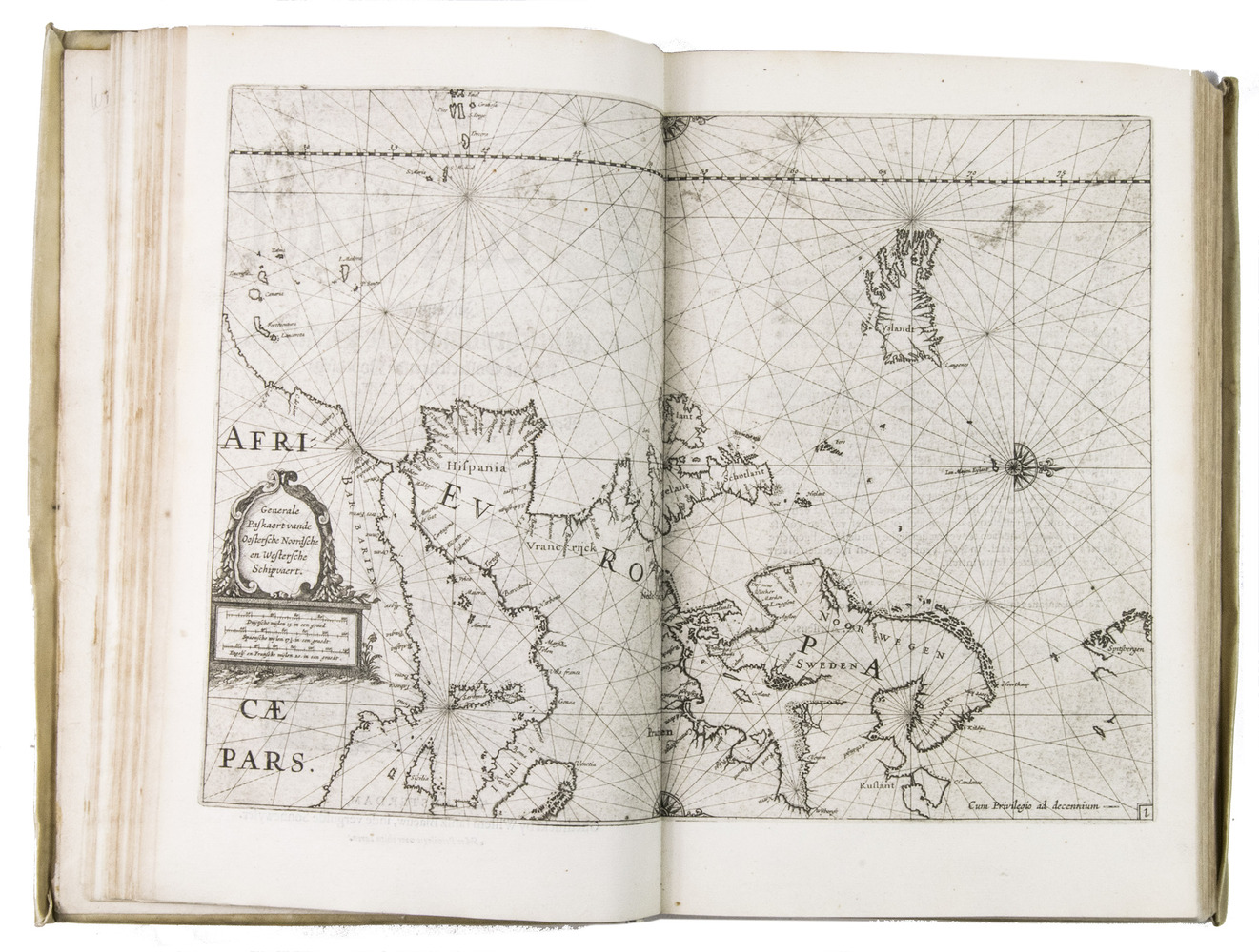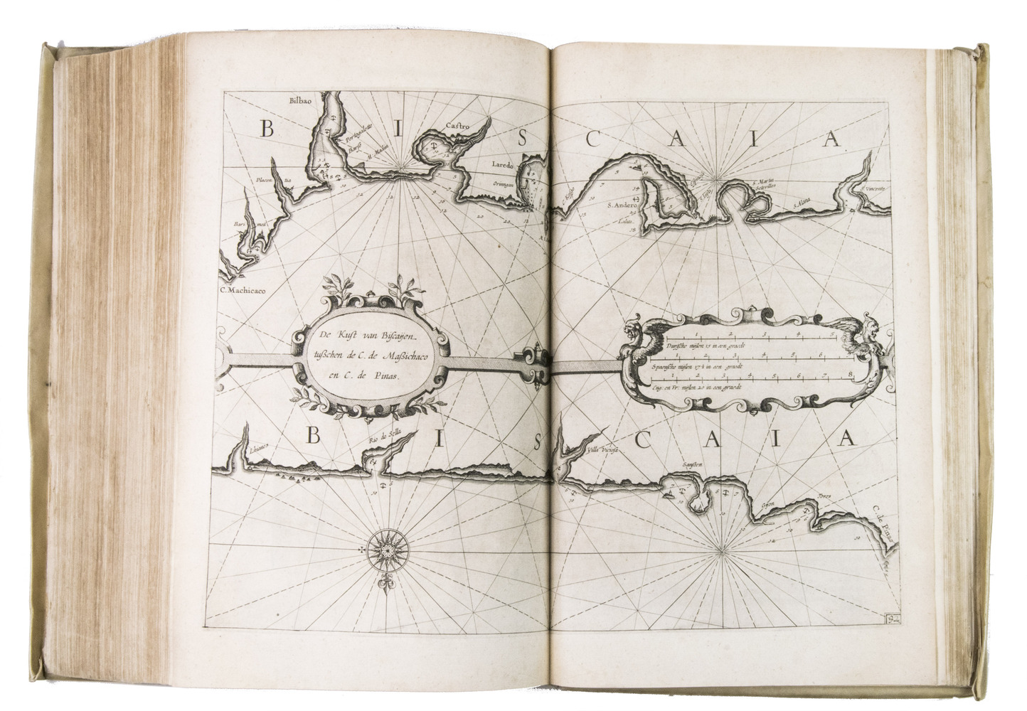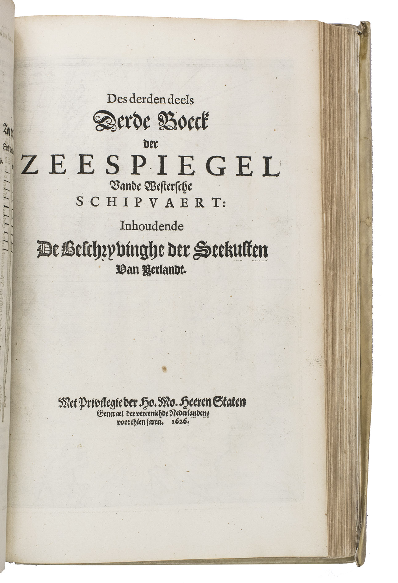 Second edition of Willem Blaeu's famous but extremely rare pilot guide, of which only a handful of copies are still known to exist. It was one of the largest pilot guides of the time, containing almost thrice as many charts as another famous example of the time, Blaeu's own Het Licht der Zee-vaert (1608). Although the work proved hugely successful because of this large update and was republished many times, it was also actively used at sea for navigation, which accounts for its extreme rarity today. Only a few copies of each edition are currently known. For the present edition, we have only been able to trace five other copies, of which four in institutions, and just one in sales records.