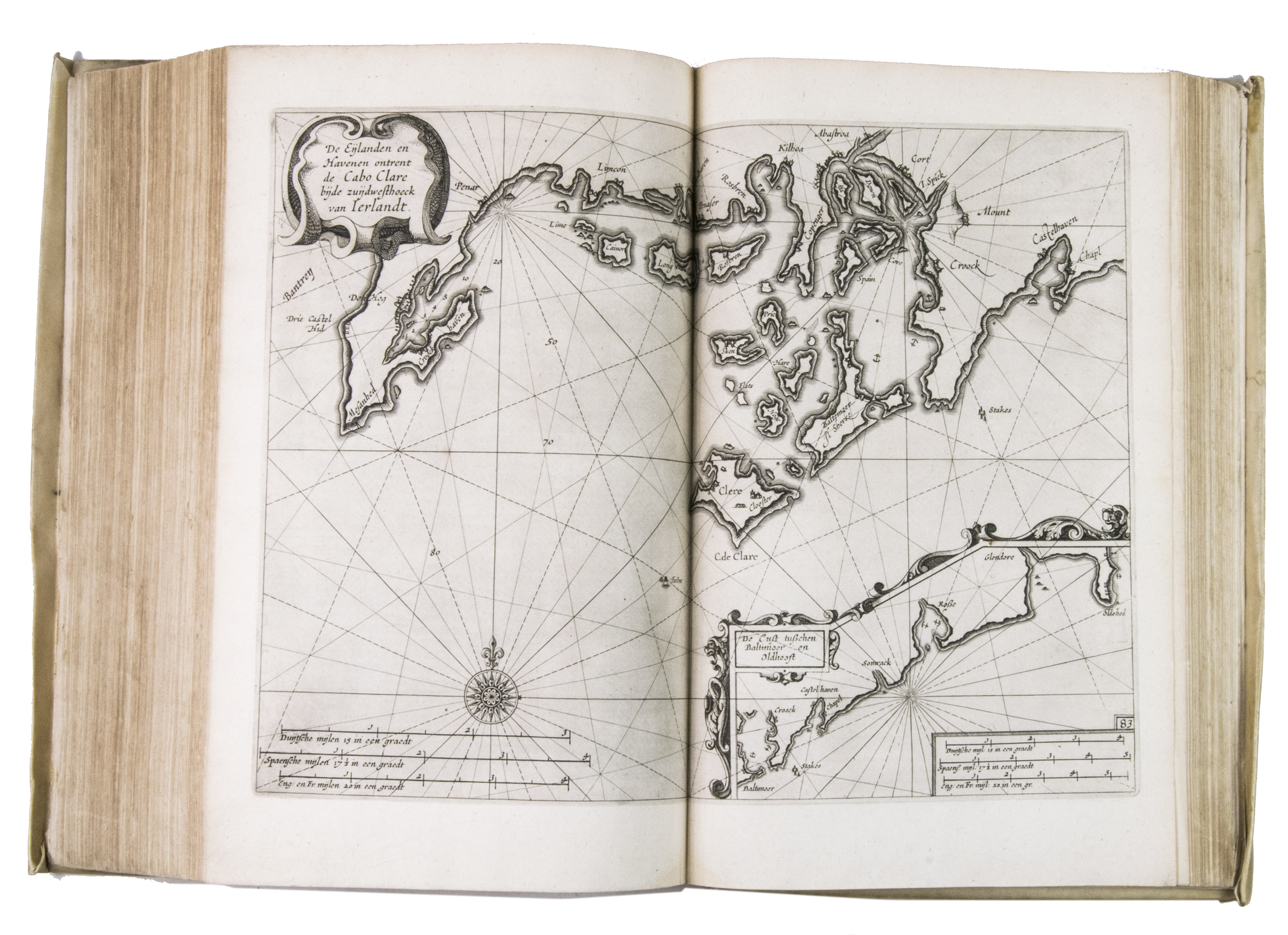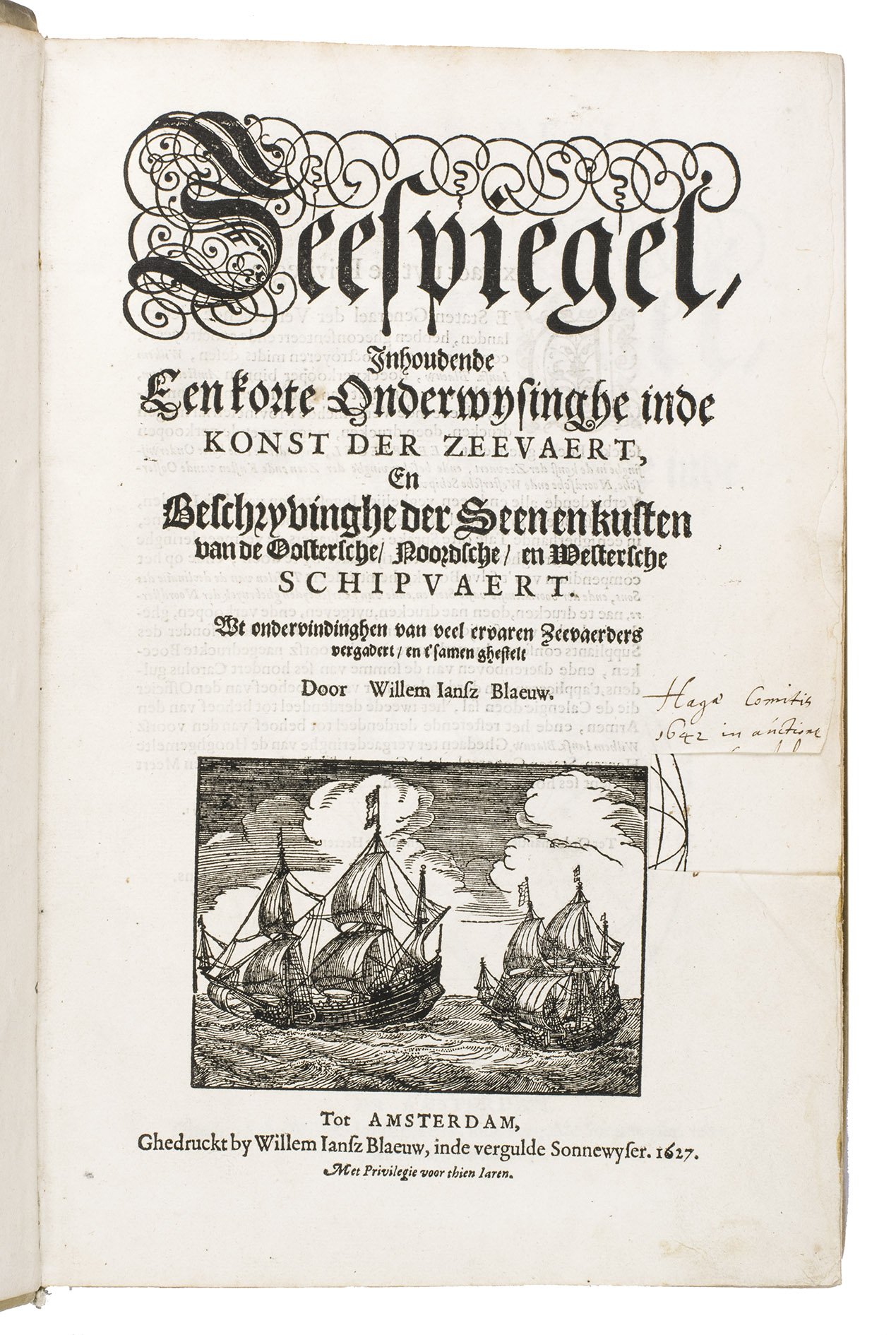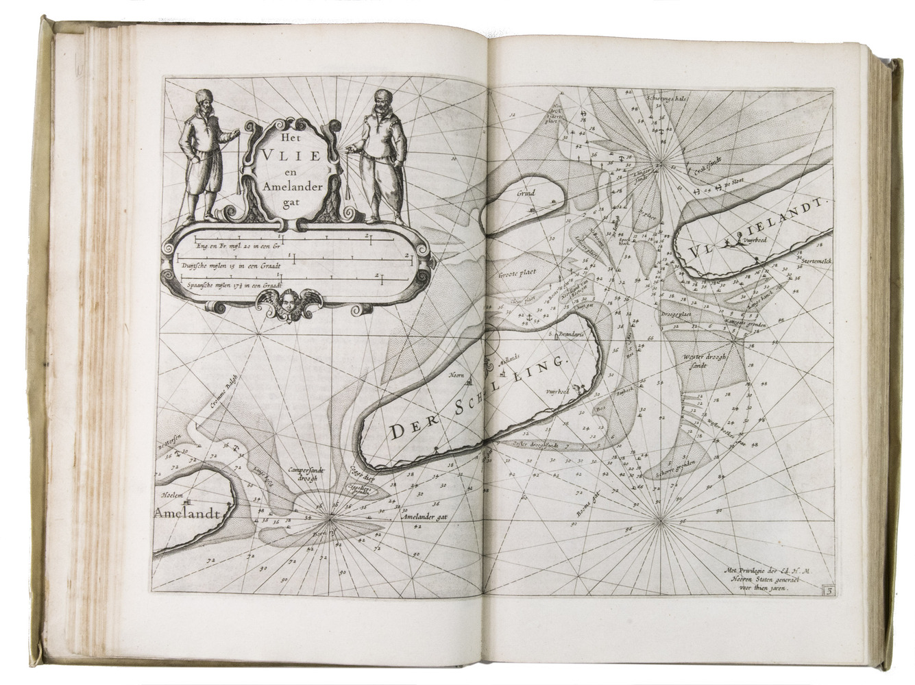 Second edition of Willem Blaeu's famous but extremely rare pilot guide, of which only a handful of copies are still known to exist. It was one of the largest pilot guides of the time, containing almost thrice as many charts as another famous example of the time, Blaeu's own Het Licht der Zee-vaert (1608). Although the work proved hugely successful because of this large update and was republished many times, it was also actively used at sea for navigation, which accounts for its extreme rarity today. Only a few copies of each edition are currently known. For the present edition, we have only been able to trace five other copies, of which four in institutions, and just one in sales records.