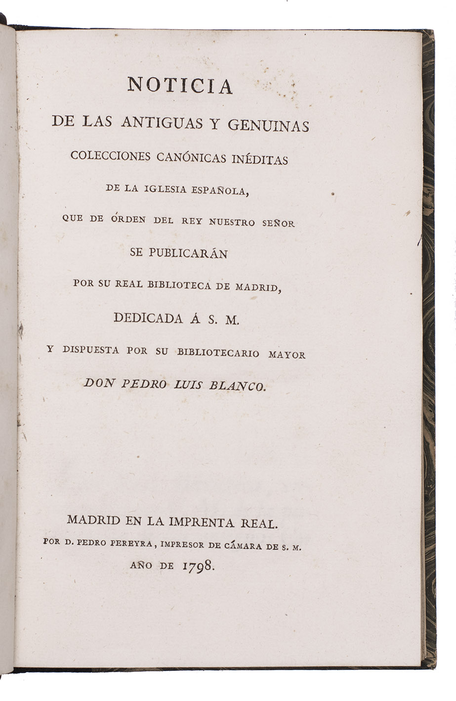 Noticia de las antiguas y genuinas colecciones canónicas inéditas de la Iglesia Espanola, que de órden del rey nuestro señor se publicarán por su Real Bibliotheca de Madrid, ...