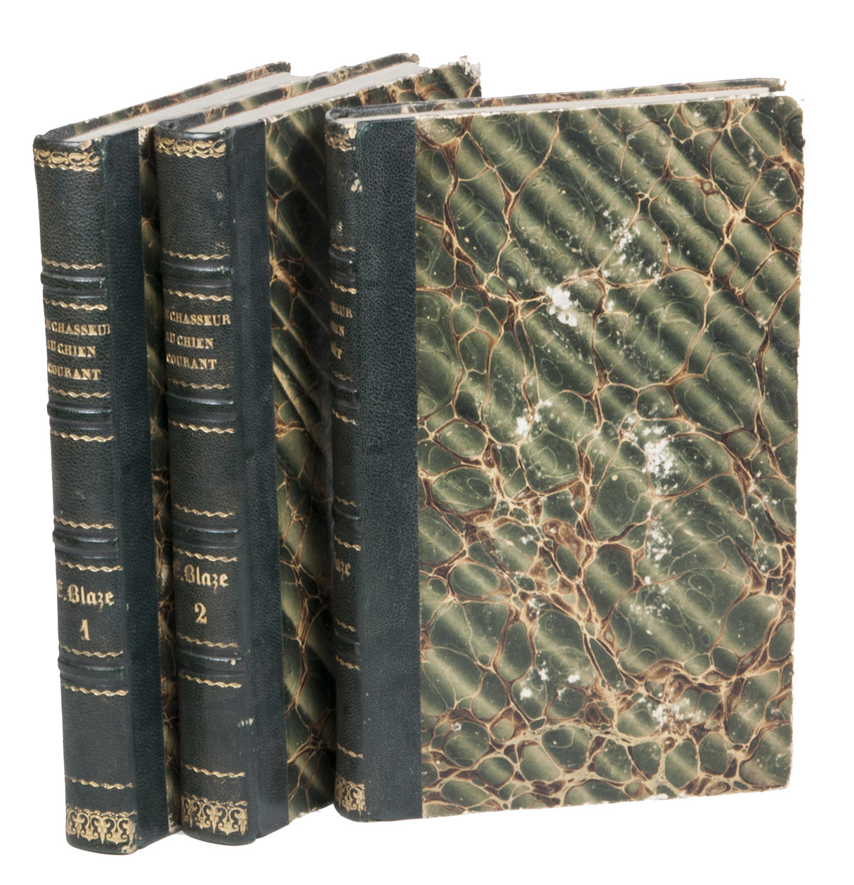 (2) BLAZE, Elzéar. Le chasseur au chien courant, contenant les habitudes, les ruses des bêtes; l'art de les quêter, de les juger et de les détourner; de les attaquer, de les tirer ou de les prendre a force; l'éducation du limier; des chiens courants, leurs maladies, etc. Paris, Bernard et Cie for the dépot de librarie, 1851.