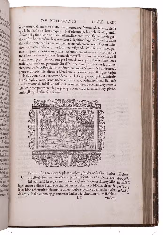 King François I of France, who reigned from 1515 to 1547, greatly admired the Italian Renaissance and encouraged Italian influences in many aspects of French culture. The present book reflects that movement both as a model of French Renaissance prose under Italian influence and as an example of book production, using new roman and italic types in the new style introduced under Italian influence in the 1530s.