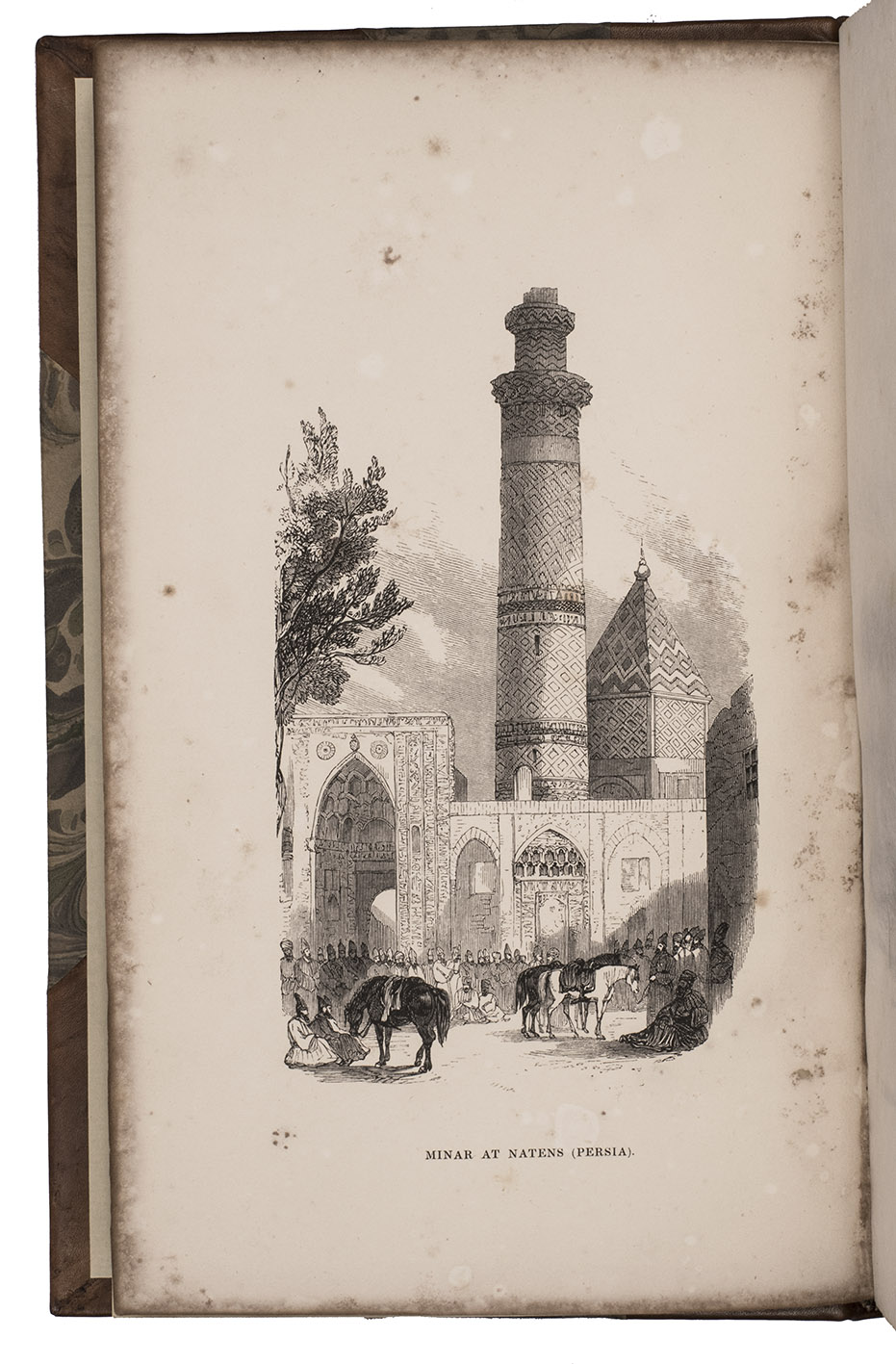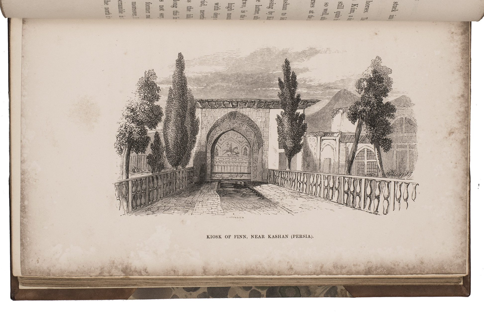"The author travelled in 1841 from Tehran to Esfahan, Persepolis, Shiraz, Kazeroun, Shushtar, Dezful, Susa, Khorramabad, Boroujerd and back to Tehran. It [this work] is mostly a travel book, however, the author gives a good picture of tribal life and especially the political situation in Fars; principally the hostility between the Qashqai tribe which controlled the countryside and the Qavam ol Molk family which controlled Shiraz. There are also descriptions of historical sites and monuments along the way" (Ghani). "It is with the view of rescuing from a second oblivion this once classical ground that the author has endeavoured to draw aside a corner of the veil which still covers this mysterious region" (preface).