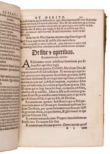 Early Cologne edition of one of the most intriguing irenical works of the early Reformation. The present work is the Unio dissidentium, and represents an early and expanded state of a work first published in Antwerp in 1527. The Unio dissidentium is a substantial irenical treatise in systematic theology, conceived as an attempt to reconcile the opposing confessional positions that divided Christendom in the first decades of the Reformation. Its compiler assembled an impressive body of biblical passages alongside nearly 550 quotations from the Church Fathers, many of them extensive, situating the work firmly within the Humanist revival of patristic theology associated with figures such as Erasmus (1469-1536) and Beatus Rhenanus (1485-1547).