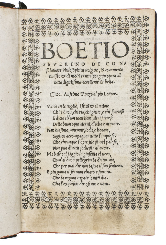 Di consolatione philosophica volgare, nuovamente revisto & di molti errori porgato opera al tutto dignissima eccellente & bella.