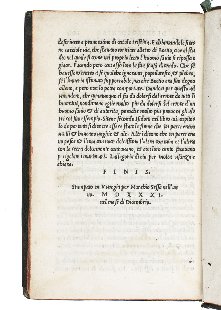 (Colophon:) Venice, Melchior Sessa, December 1531. 8vo. With the title and leaf 1 printed within a border made up of typographical ornament, and 6 decorated woodcut initials, of which one historiated. 17th-century gold tooled green morocco. [8], 104 ll.