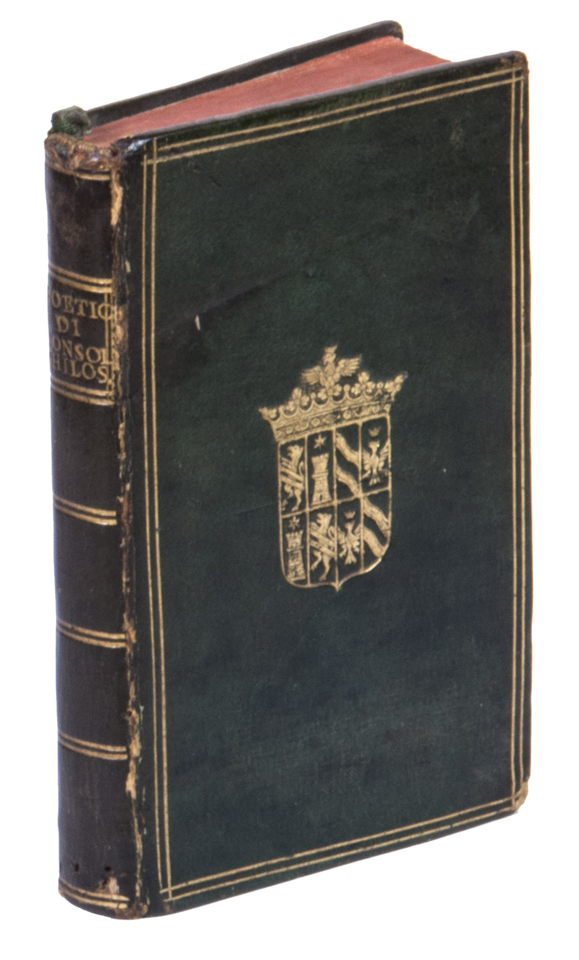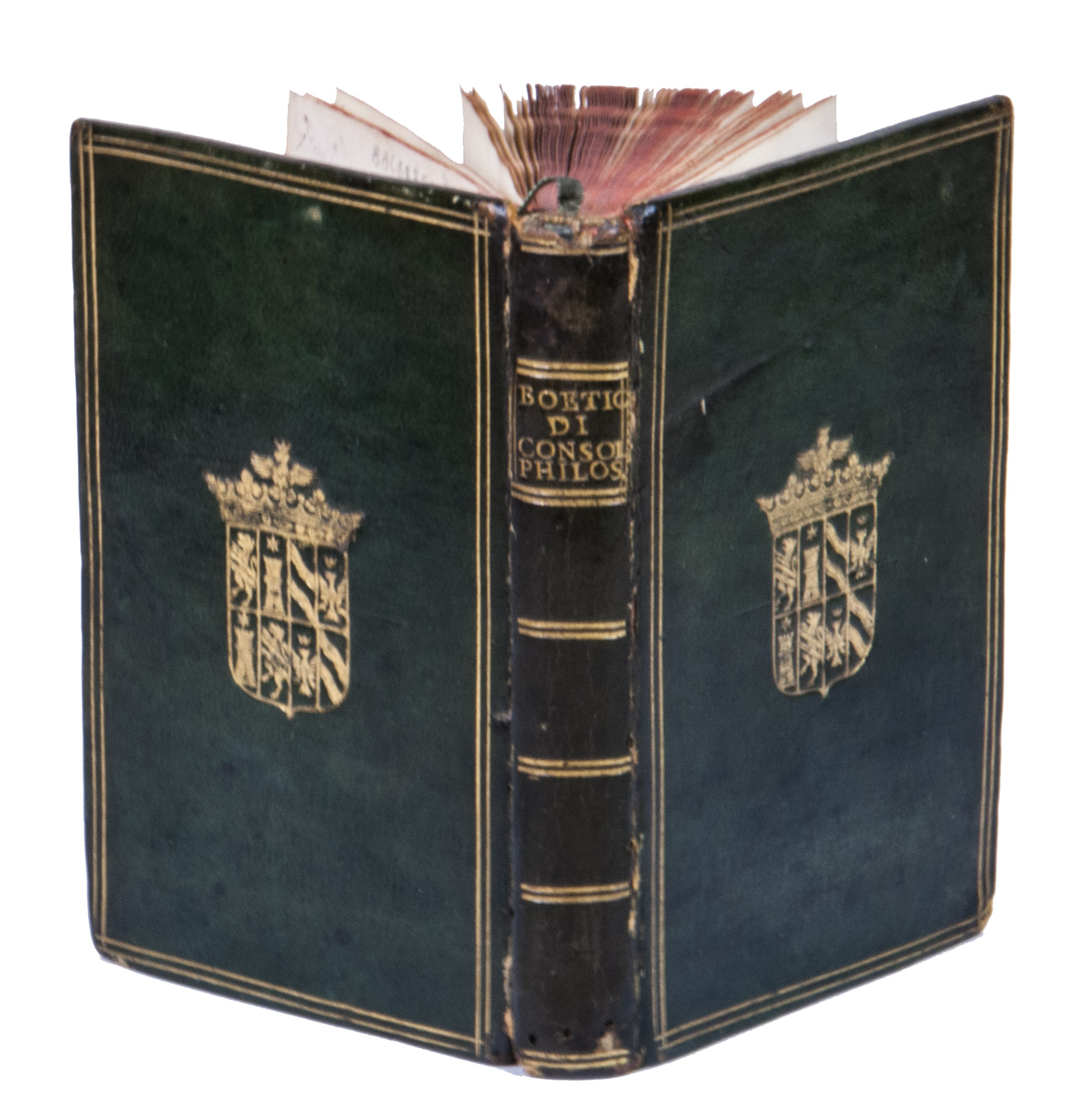 Provenance: The work was bound for the Gaetani family in the 17th century, as it has their coat-of-arms on the boards. It then likely ended up in the possession of Nicola Fransesco Haym (1678-1729), an Italian librettist, as the the work contains an annotation by him. It was later sold to F. Renard, who is otherwise unknown, as his bookplate has been mounted in the beginning of the work. It was then sold to Lucius Wilmerding (1880-1949), the well-known American bibliophile and collector. His vast library, incorporating a large collection of Renaissance and other armorial and association bindings, was auctioned off in New York during 1950 and 1951.