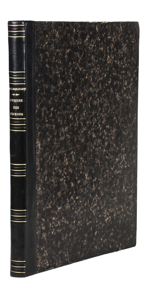 Collection of revised ornithological offprints from Comptes rendus (a French scientific journal published since 1666), by Charles Lucien Bonaparte, a well-known ornithologist and nephew of Napoleon. Included are taxonomic classifications of various birds, including pigeons, herons, galliformes (gamefowl) and ostriches, birds found in the collections of various museums in the Netherlands, Belgium and the Marquesas Islands, and also a review of George Robert Gray's Genera and subgenera of birds (1855). Apparently several similar collections were published, containing various articles by Bonaparte from the Comptes rendus.