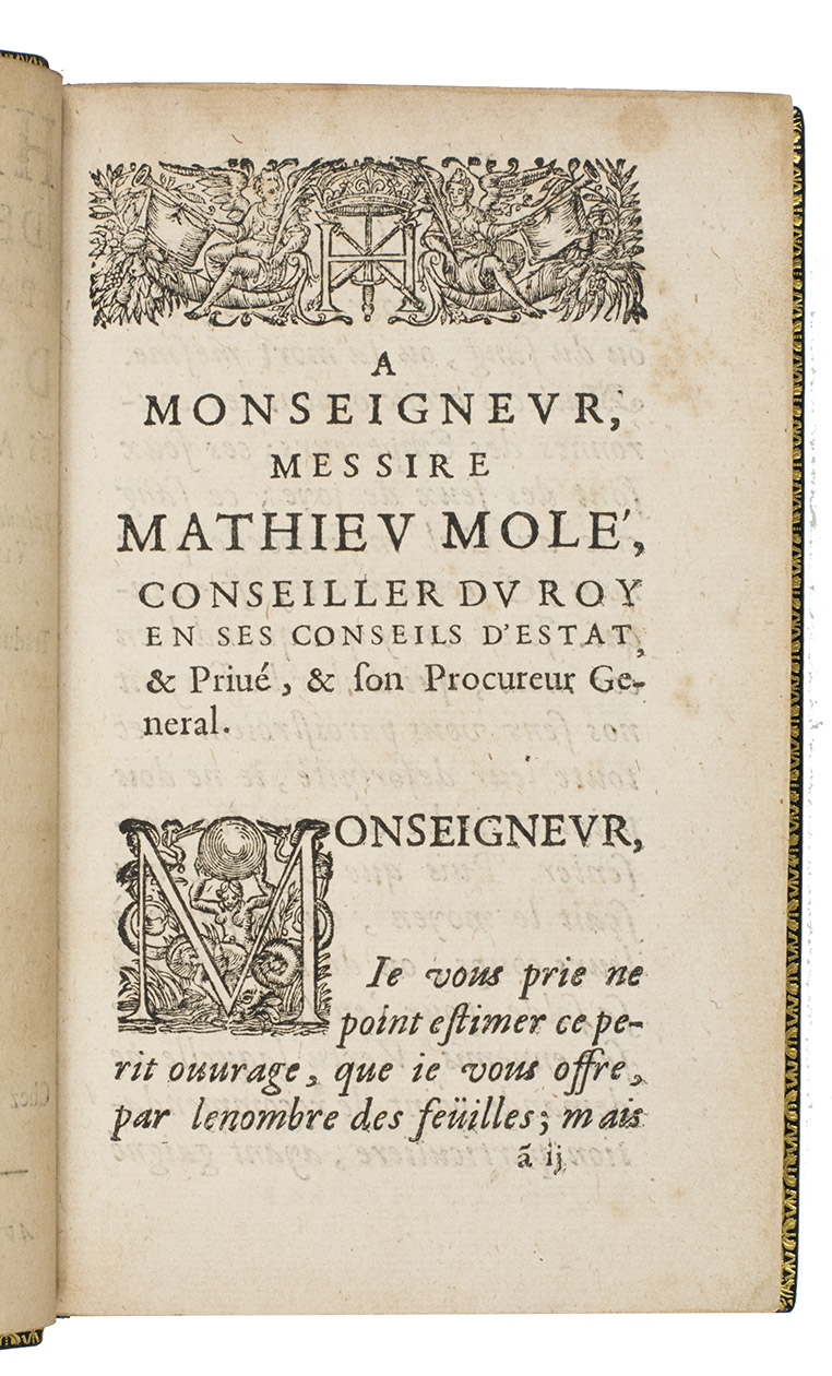 Paris, Sebastian Cramoisy, 1633. 8vo. With woodcut printer's device of Cramoisy on the title, several woodcut headpieces. Beautiful 19th-century green morocco, spine richly gilt in compartments, with title lettered in gold, triple gilt lines along the edges of both covers, inner dentelles, marbled endpapers, gilt edges. [7] 1 blank, 465 (=485) pp.