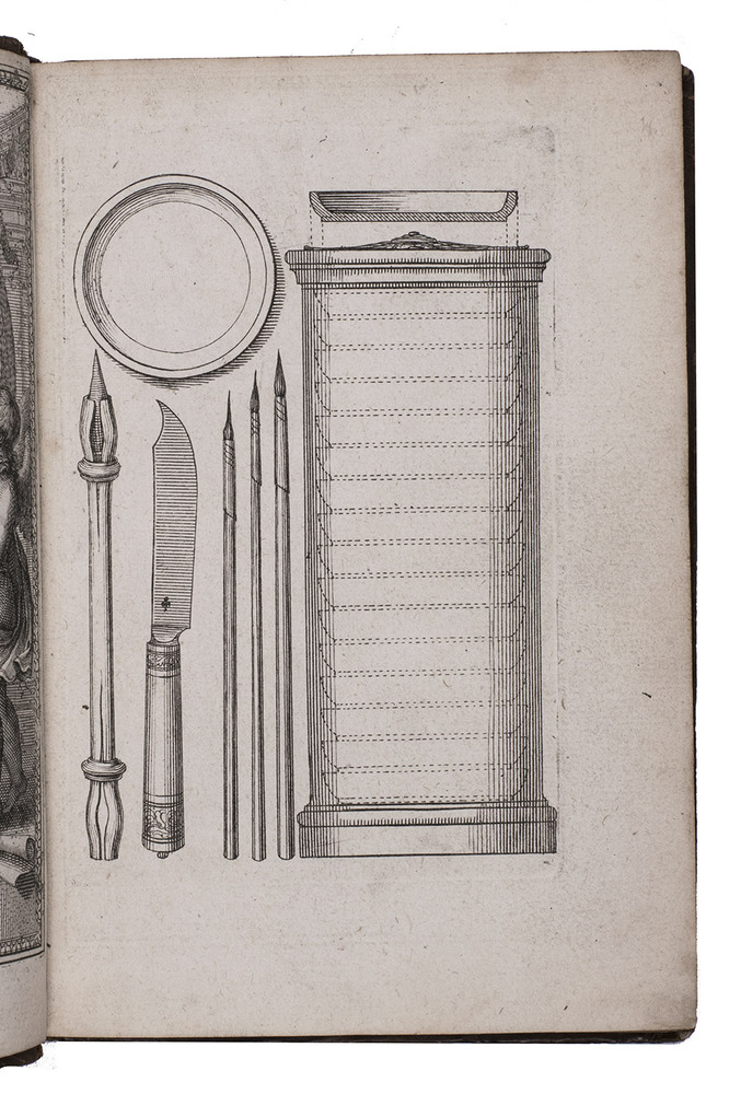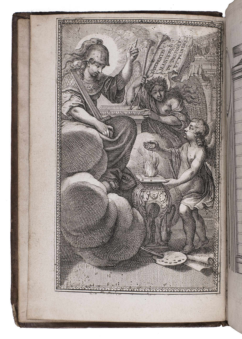 [Paris, N. Langlois, engraved 1688]. Complete suite of 11 double-page engraved plates, numbered [1a], [1b], 2-4, 6-11. Sprinkled calf (ca. 1700), richly gold-tooled spine, gold-tooled board edges. [47]; 30; [4]; [4]; 11 [+ 2 added] engraved prints.