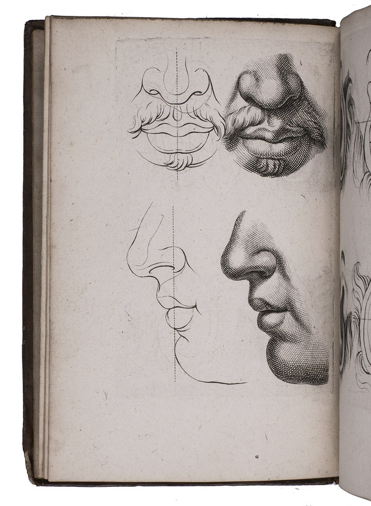 Highly interesting collection of five 17th-century print series (one a set of plates for an illustrated book) all in the field of art, drawing and ornamentation. They seem likely to have been printed together sometime around or soon after 1688.