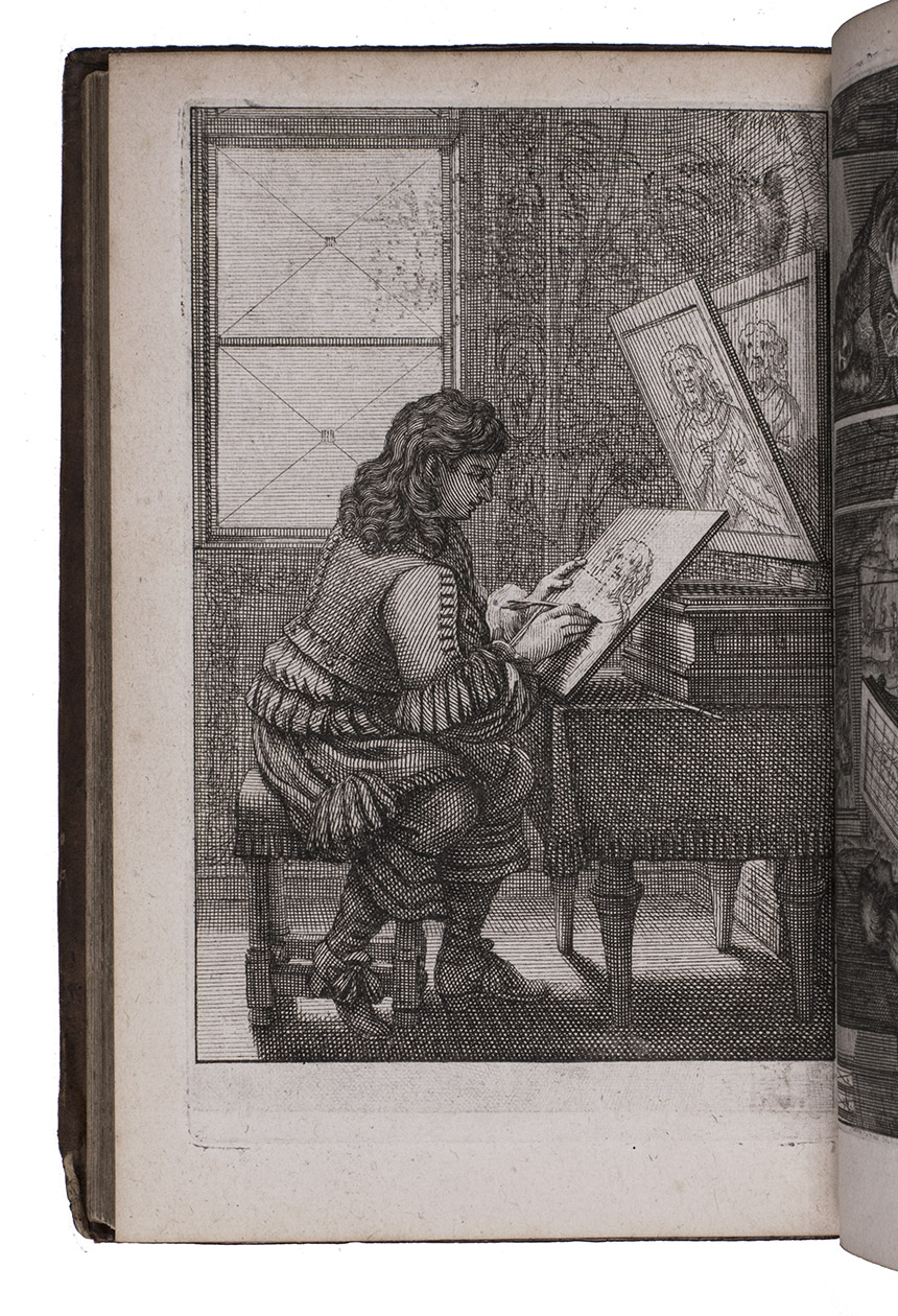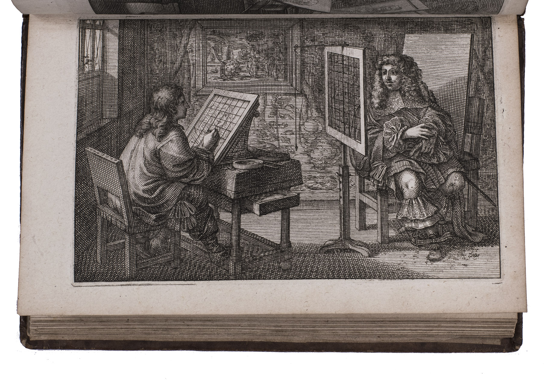 [Paris, Abraham Bosse, engraved 1667?]. Suite of 4 full-page engravings of a draftsman (2) and a painter (2) at work, sometimes regarded as part of the Differentes manieres de dessiner et peindre.