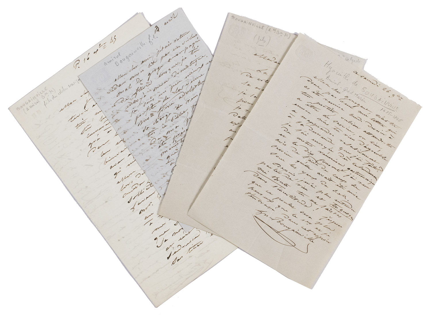 [Autograph letters by Hyacinthe de Bougainville].
