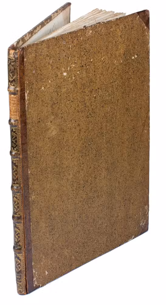 Title-page slightly damaged, as if something was pasted on it and later removed, hardly affecting the text, slightly creased throughout with some occasional minor stains or foxing. Binding rubbed along the extremities with partly cracked hinges. Overall in good condition and only slightly trimmed, leaving most of the deckles intact. Ad 1: Nissen ZBI, 737; STCN (2 copies); ad 2: STCN (3 copies); cf. Nissen ZBI, 3639 (German editions).