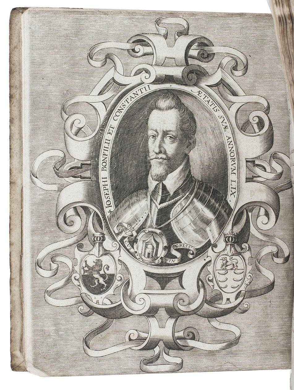 Venice, Bonifacio Ciera, 1604. 2 parts in 1 volume. 4to. With engraved device on the title-page, full-page engraved author's portrait, and numerous woodcut headpieces, tailpieces and decorated initials. Contemporary limp vellum. [48], 692 pp.