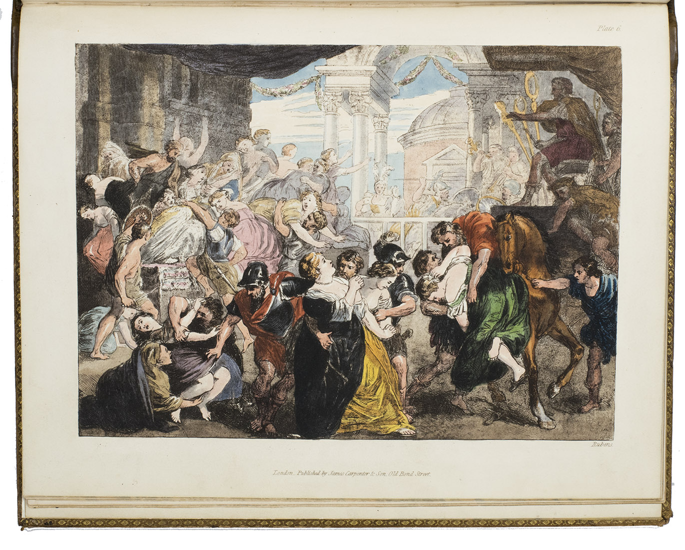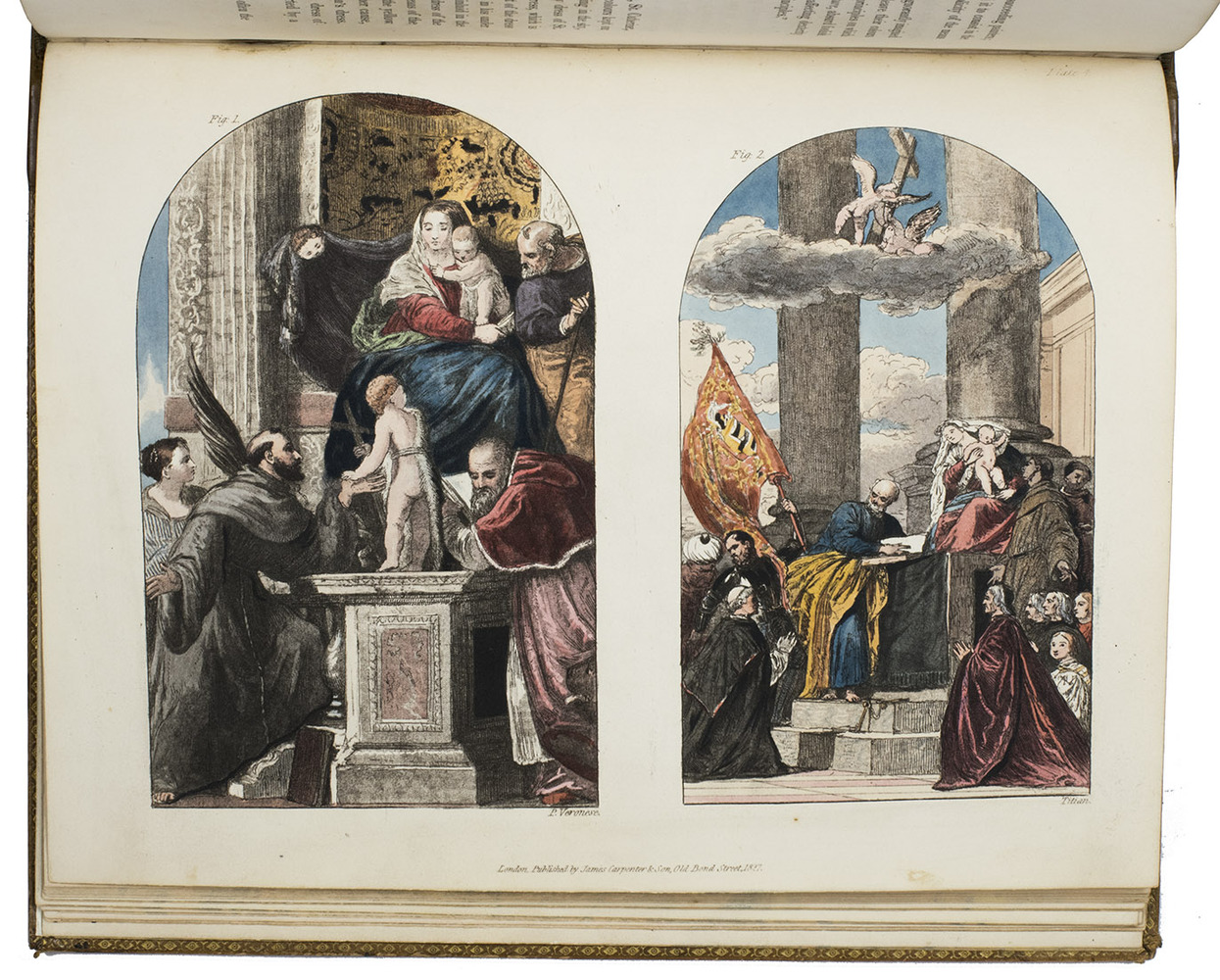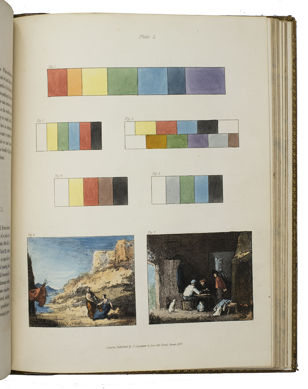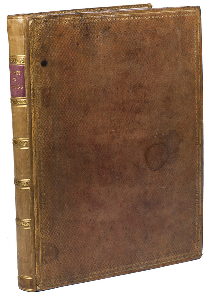 London, James Carpenter, 1826-1827. 3 parts in 1 volume. 4to. With 25 full-page partly handcoloured etched and aquatint plates with 105 reproductions by Burnet of famous paintings. Contemporary calf, covers blind-tooled in a checkered pattern, marbled edges. [4], 31, [1 blank]; VI, 45; V-IX, [3], 64 pp.