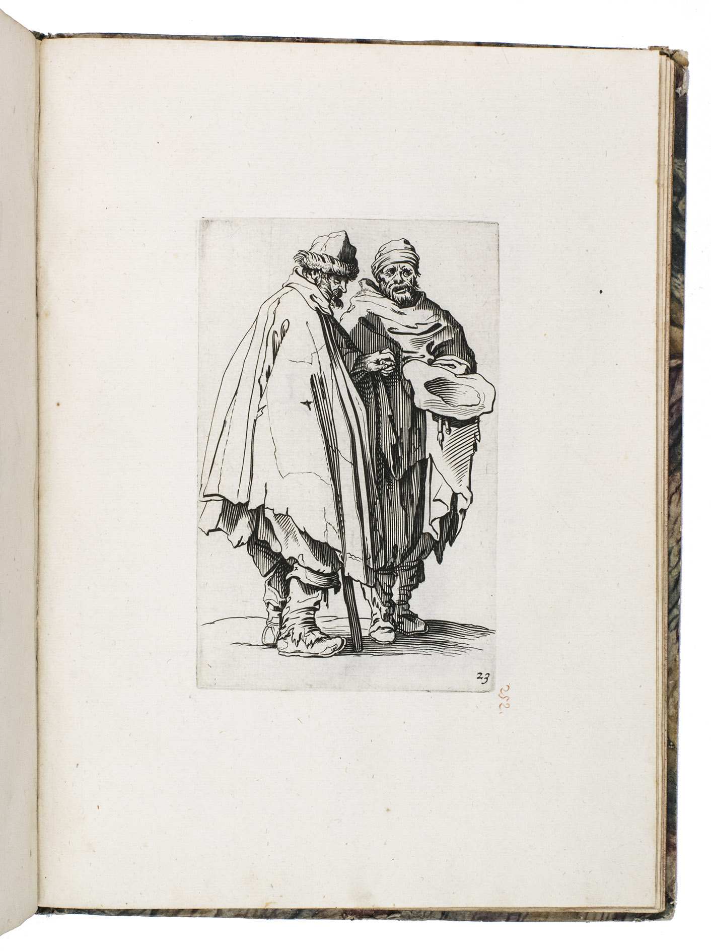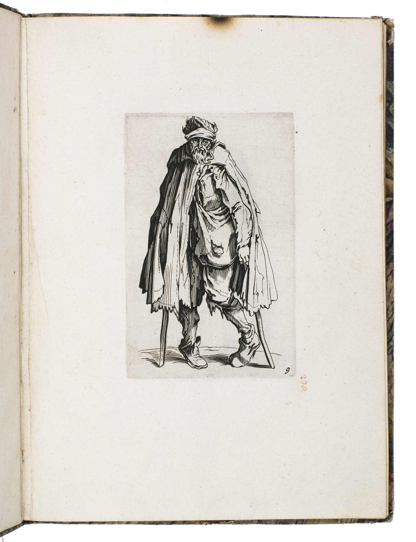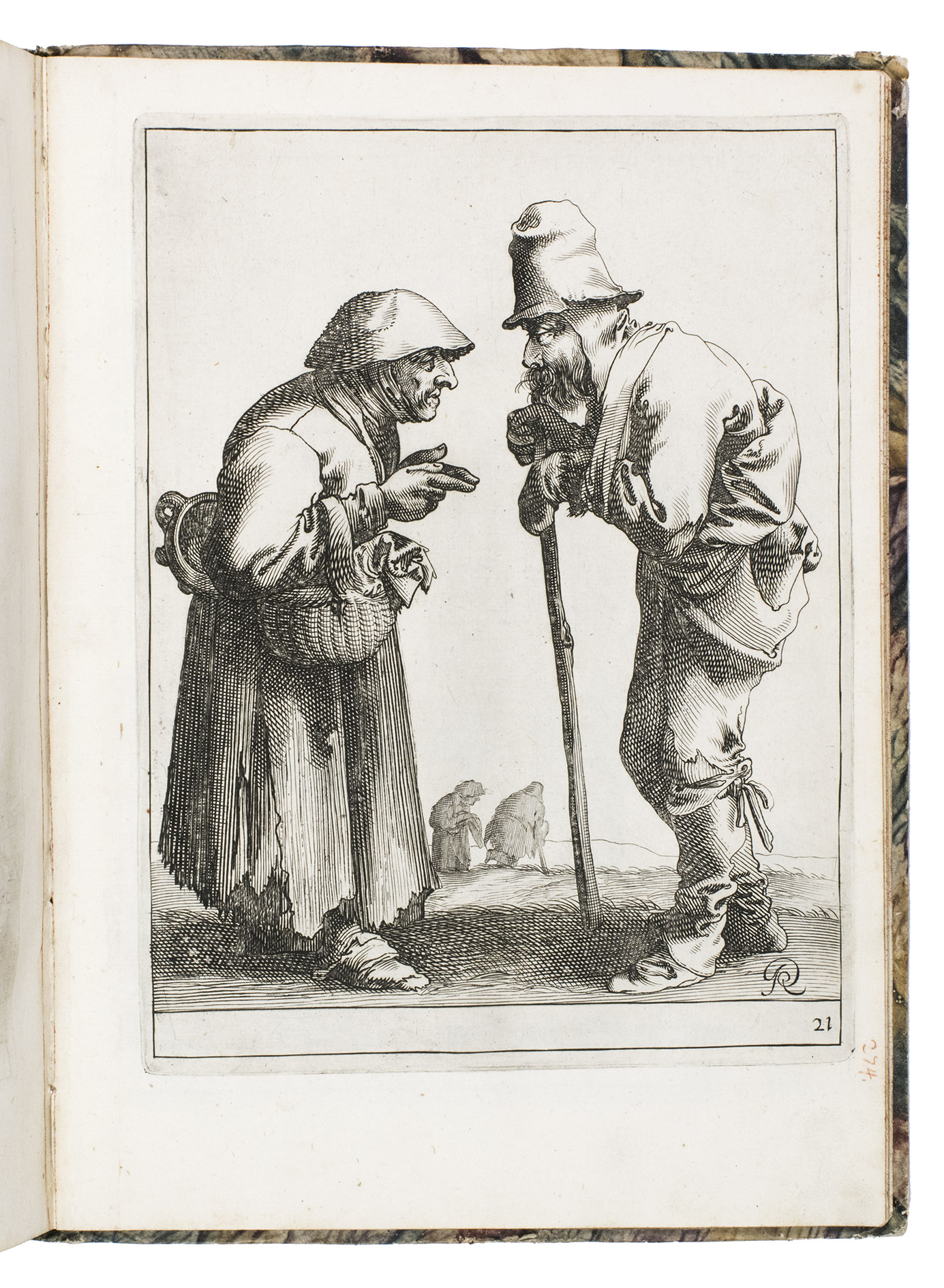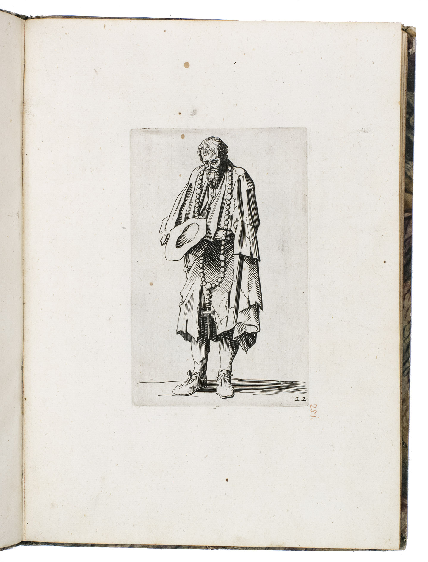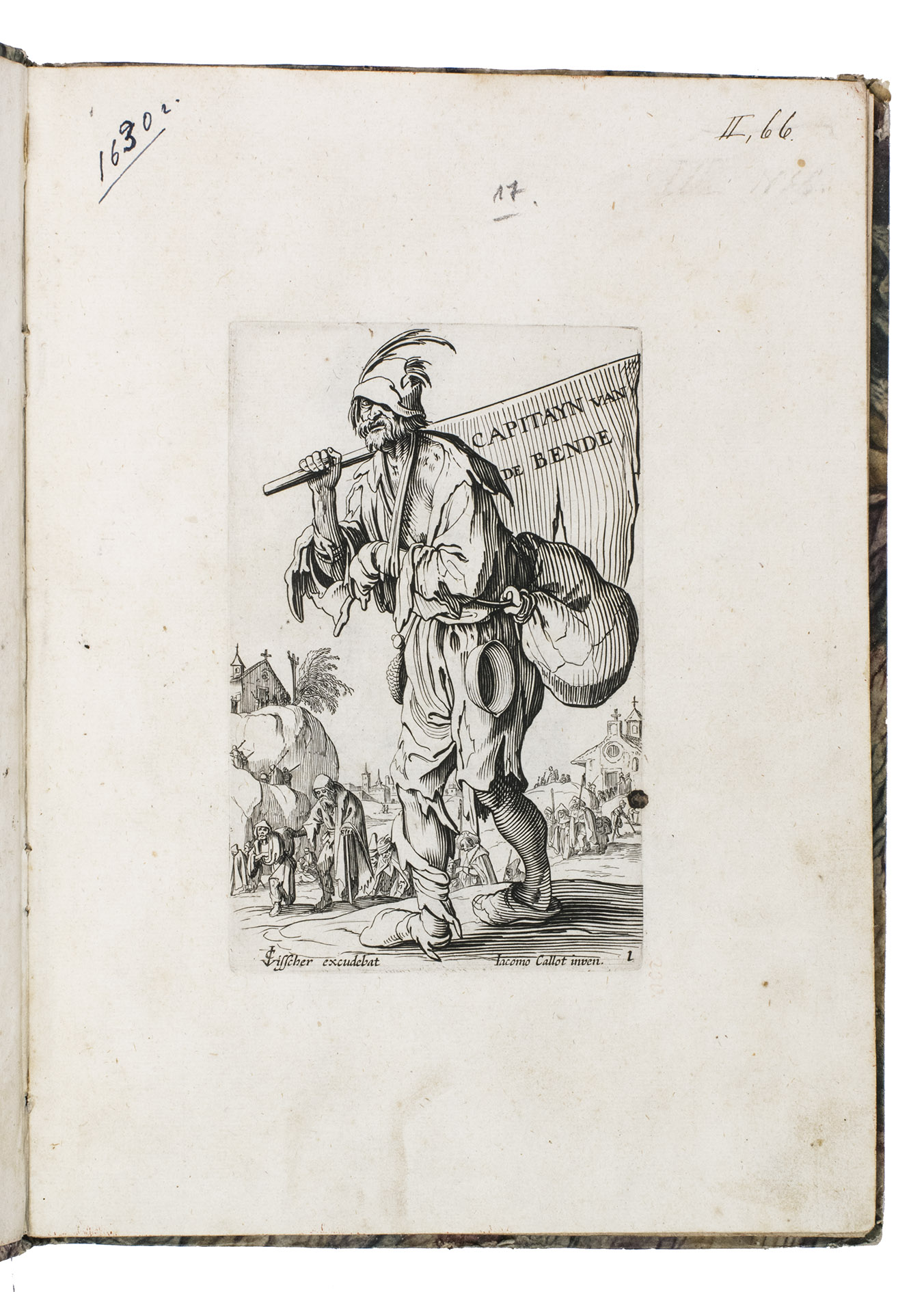 [Amsterdam], Claes Jansz. Visscher, [ca. 1645]. A series of 24 numbered engraved plates by Claes Jansz. Visscher after Jacques Callot (some copied in mirror image), the first with the title on a banner carried by the beggar in plate 1.