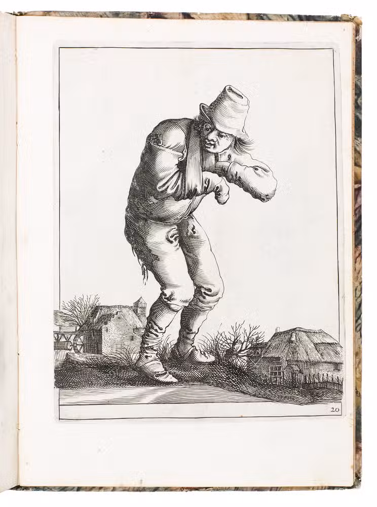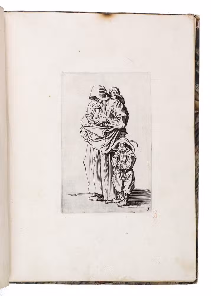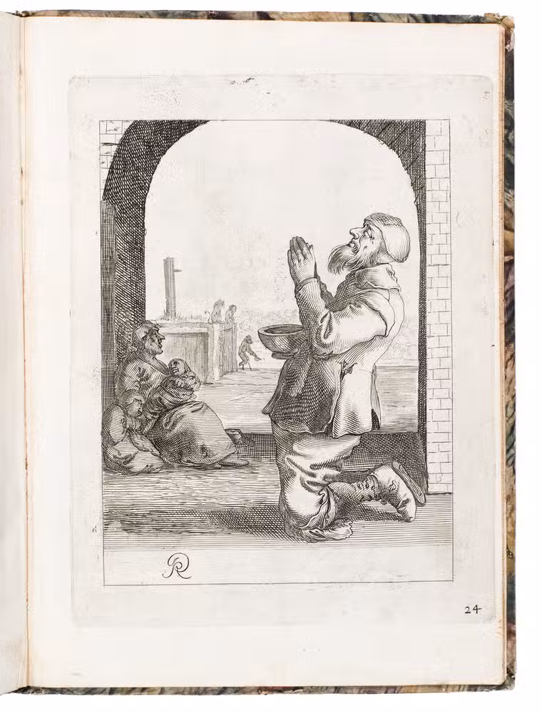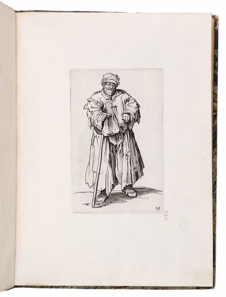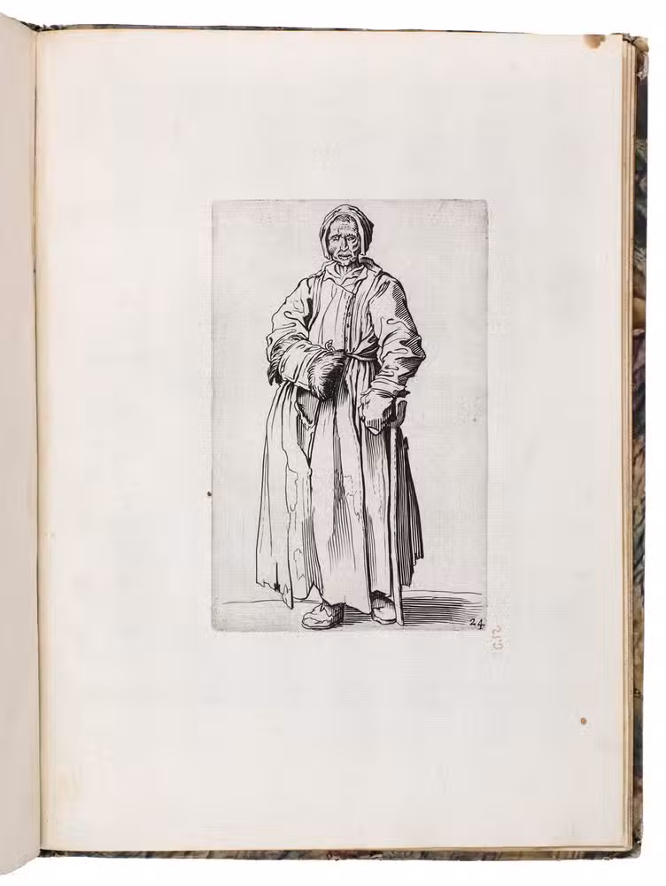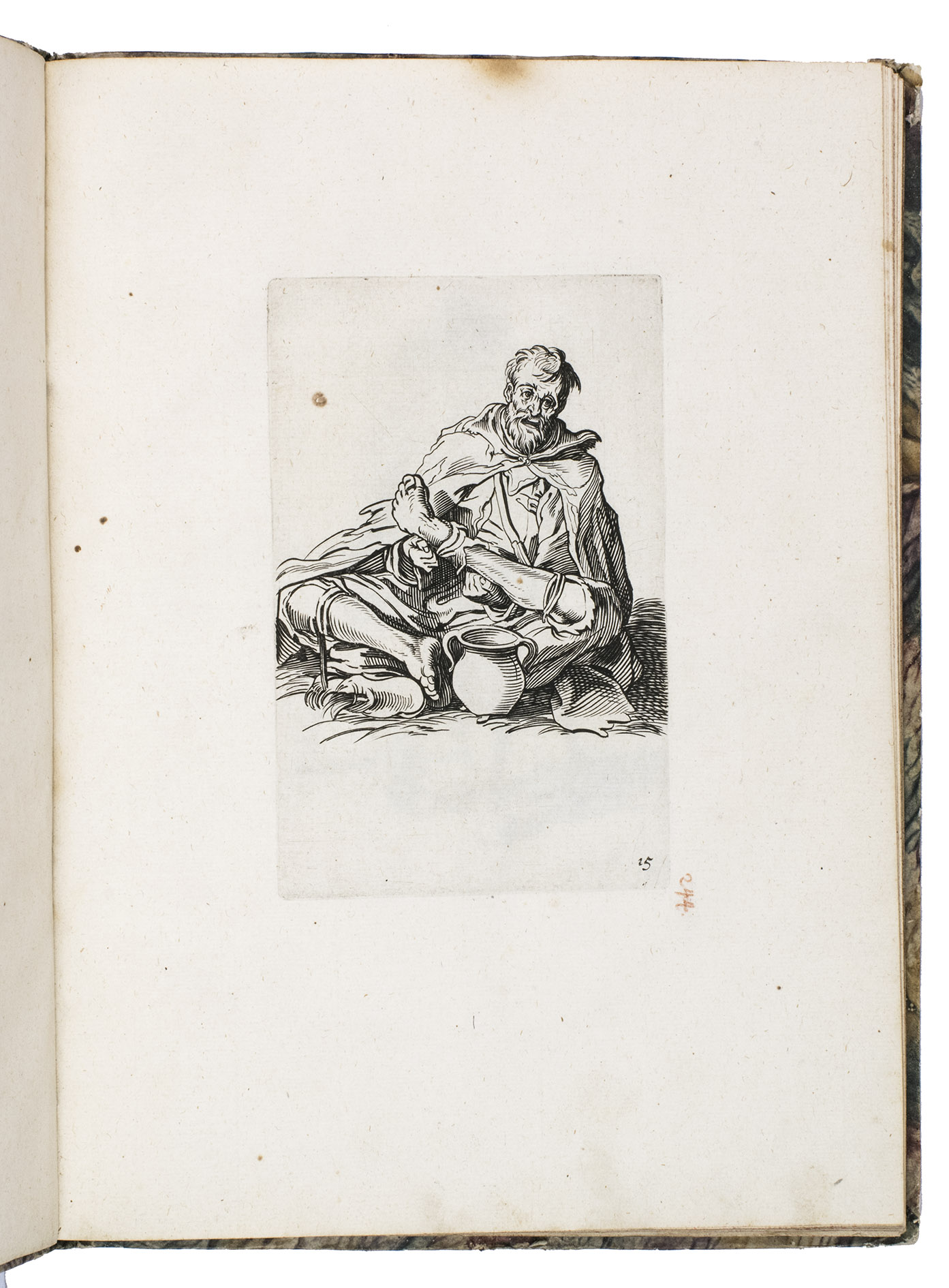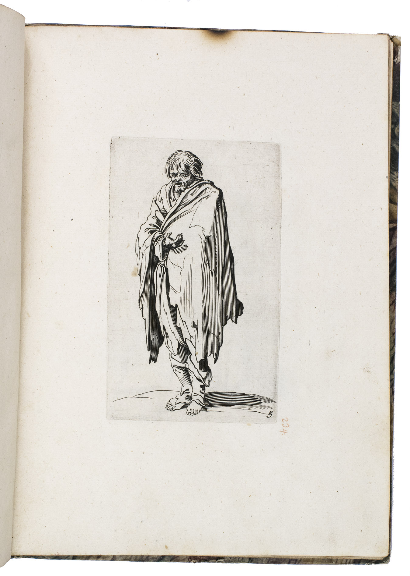 [Amsterdam], Claes Jansz. Visscher, [ca. 1645]. A series of 24 numbered engraved plates by Claes Jansz. Visscher after Jacques Callot (some copied in mirror image), the first with the title on a banner carried by the beggar in plate 1.