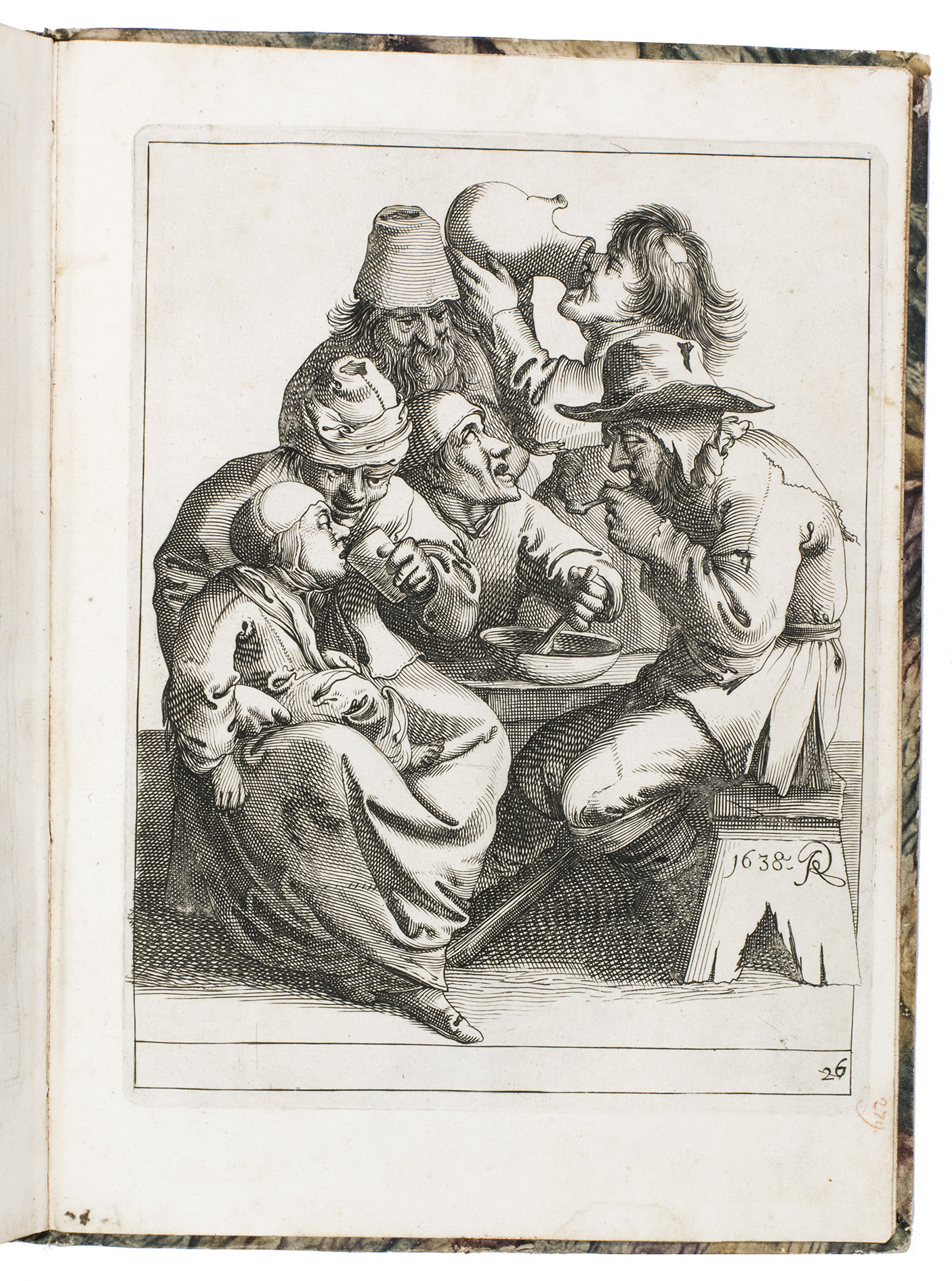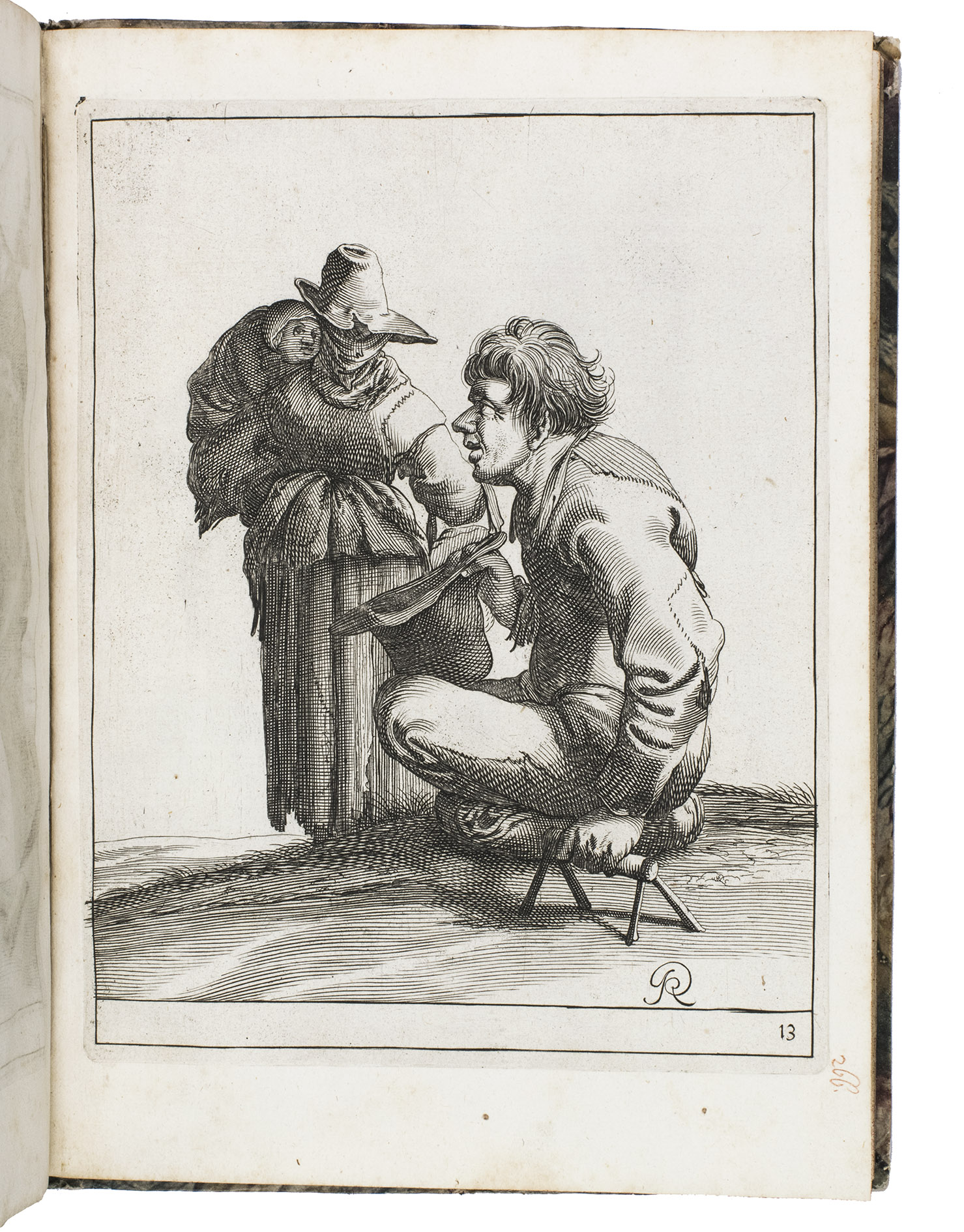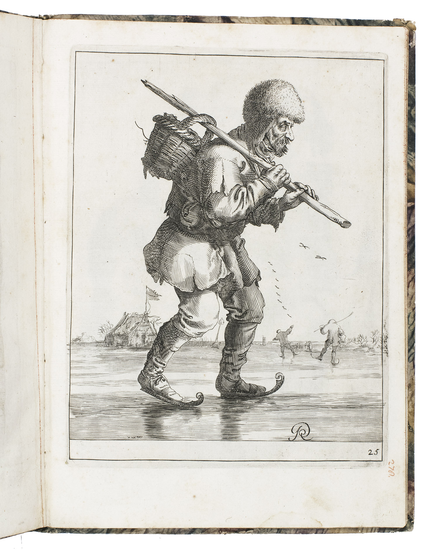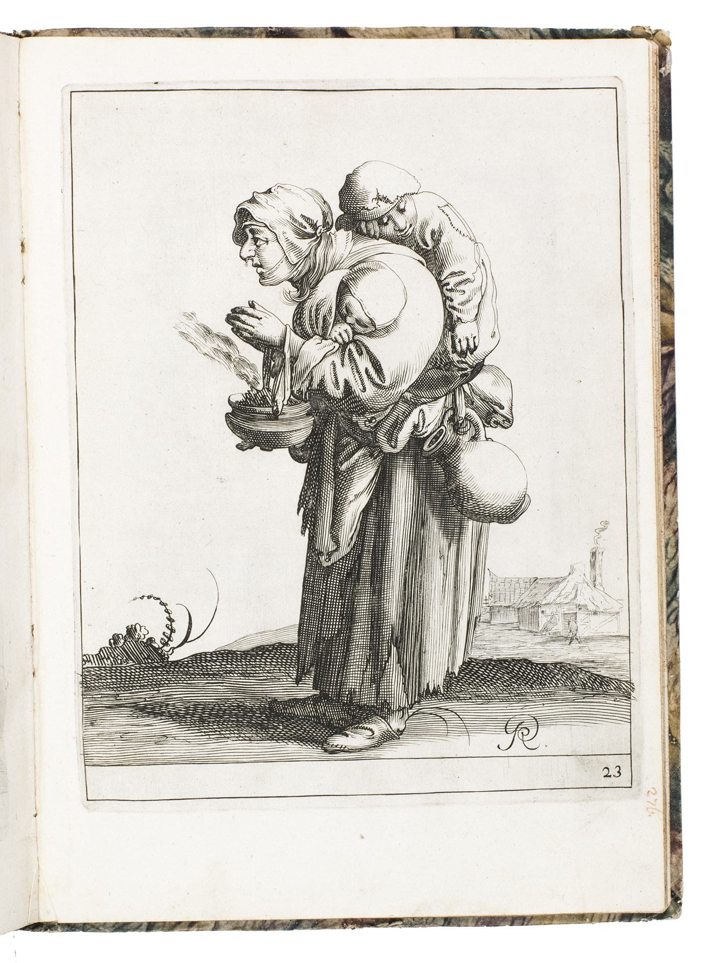 Ad 1: Only copy located, with the plates in their first state, of a print series depicting beggars and tramps published by Claes Jansz. Visscher after the original ca. 1625 print series by Jacques Callot, Capitano de Baroni. Hollstein notes that the stock list of Claes Jansz. Visscher's son Claes Claesz. Visscher II includes this title, but no copy could be located. The plates apparently descended to Carel Allard (active 1673-1707) for he published it with the plates in a second state, bearing his own name (known only from a copy at Yale University Library).