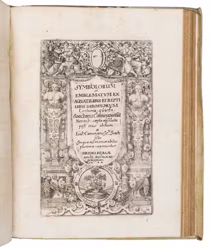 The Symbolorum & emblematum can be considered "a milestone in the application of natural history in emblems ..." (Emblems and the natural world Leiden, Brill, 2017). Joachim Camerarius the Younger (1534-1598) was a German botanist, zoologist, and humanist scholar.
