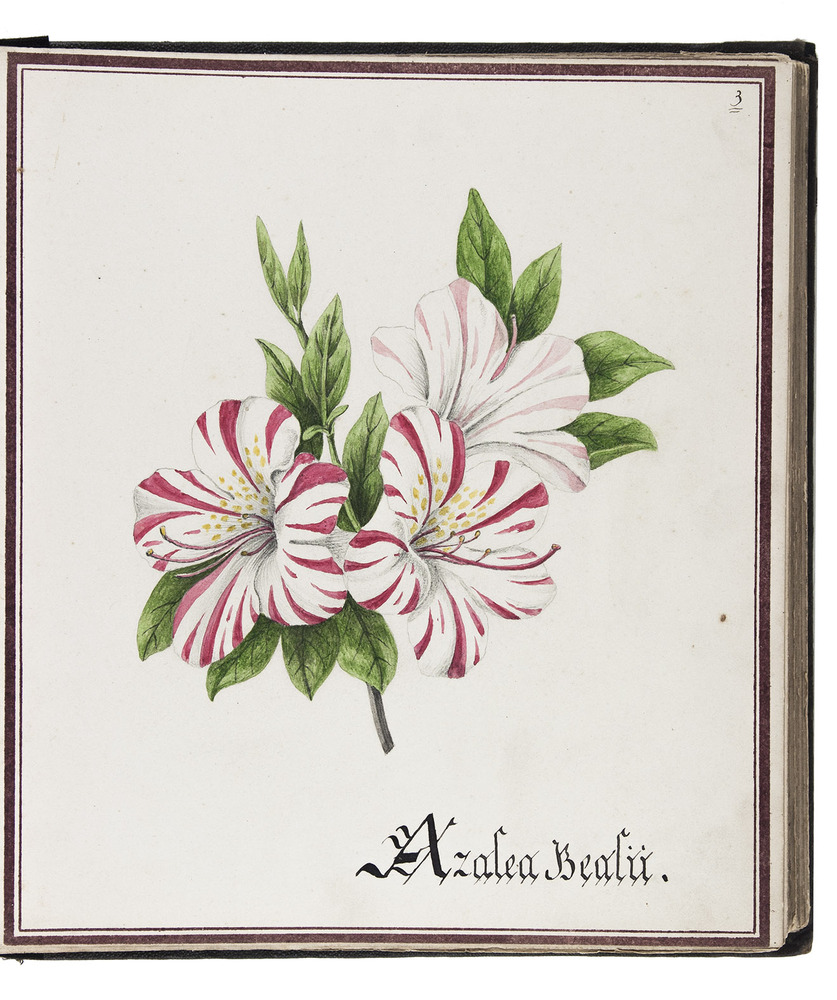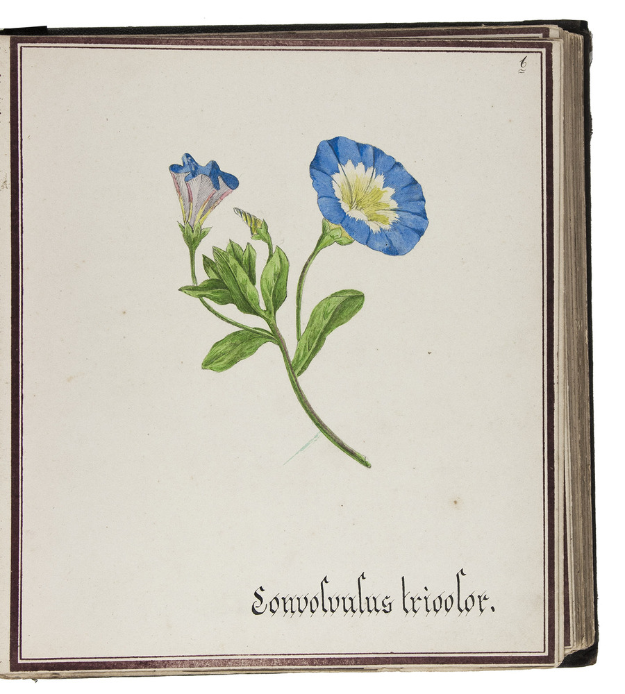 [Watergraafsmeer, ca. 1884]. 1 volume. Small folio (22.5×20.5 cm). With 30 drawings of flowers in watercolour and ink, each with a description in Dutch on a separate leaf. The whole preceded by a title-page, a table of contents (1 page), and an introduction (2 pages). Contemporary black cloth, rebacked, modern endpapers.