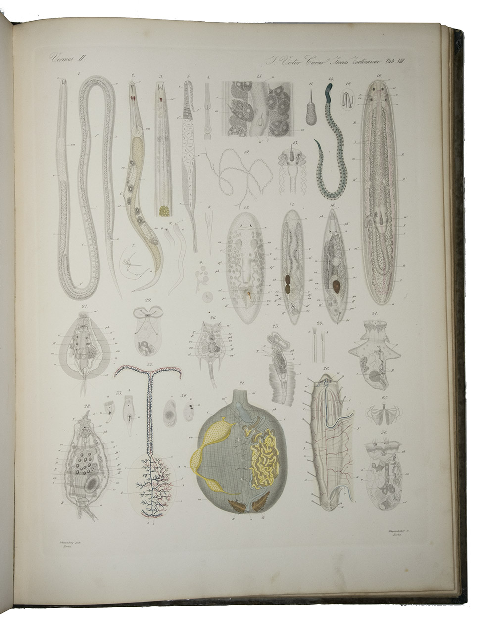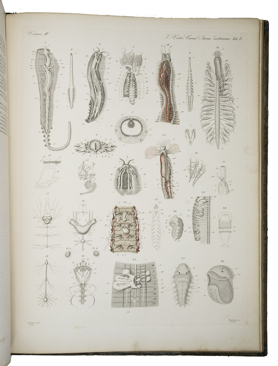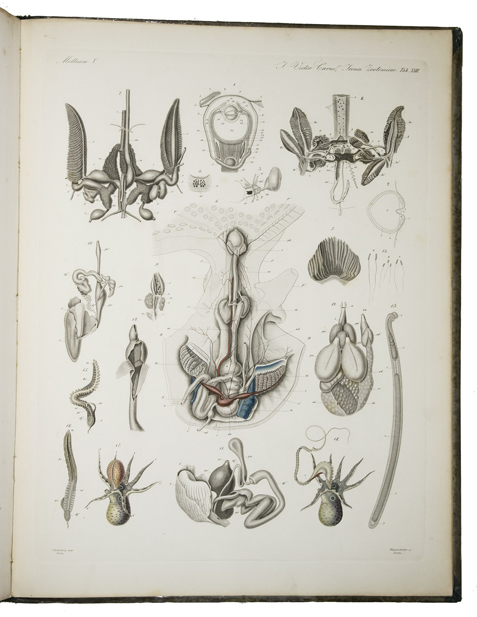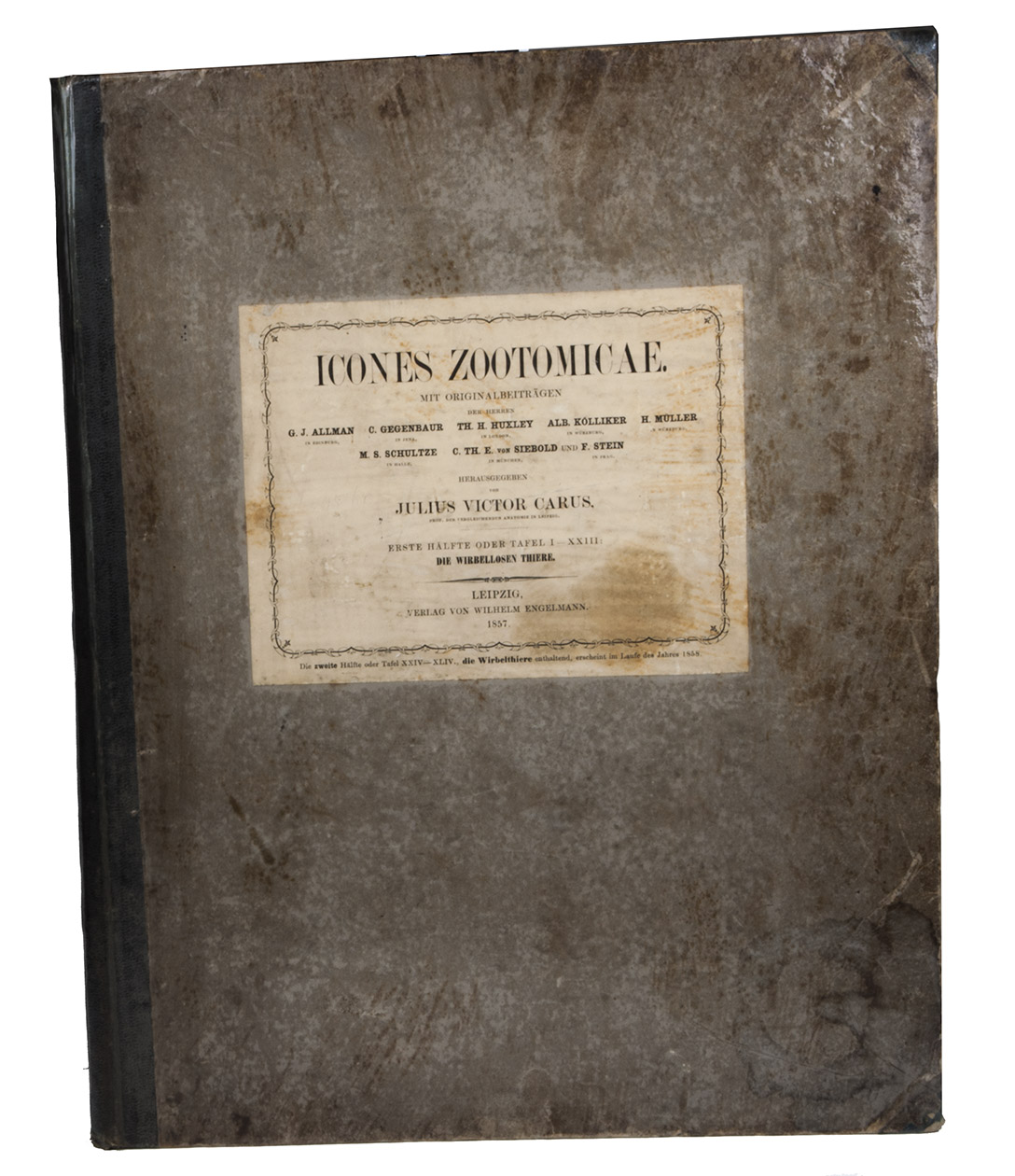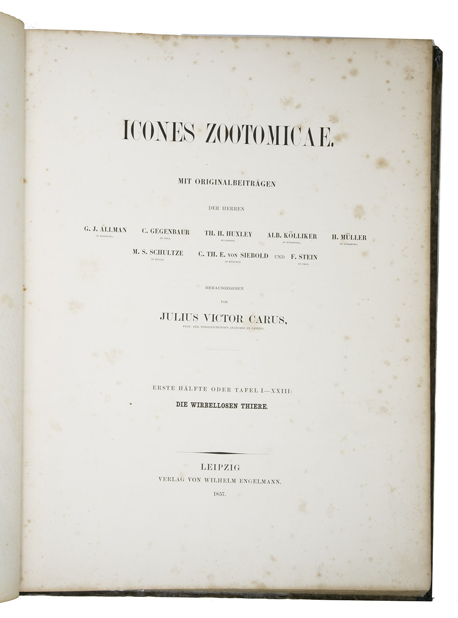 Icones Zootomicae. Mit Originalbeiträgen der Heerren G.J. Allman, C. Gegenbaur, Th. H. Huxley, Alb. Kölliker, H. Müller, M.S. Schultze, C.Th.E. von Siebold und F. Stein. Herausgegeben von Julius Victor Carus. Erste Hälfte oder Tafel I-XXIII: Die Wirbellosen Thiere.