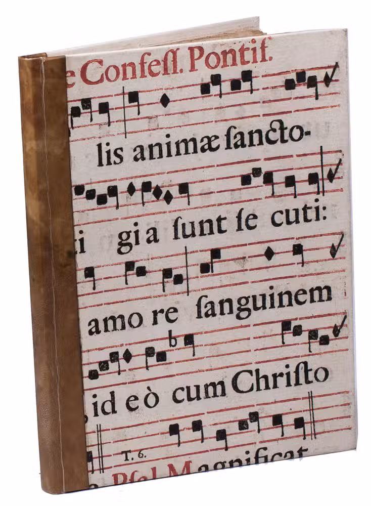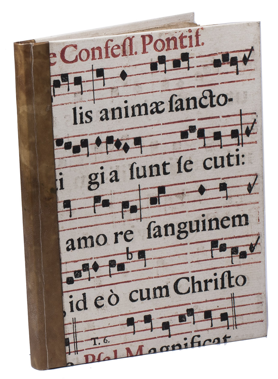 Parma, Seth Viotti, 1567. 4to. With a woodcut title-vignette, woodcut decorated initials, 13 woodcut illustrations in the text and 4 folding woodcut plates. Modern half calf, boards covered with two early modern (?) leaves of liturgical music printed on paper in red and black. [1], [1 blank], [18], "100" [= 99], [1 blank] pp.