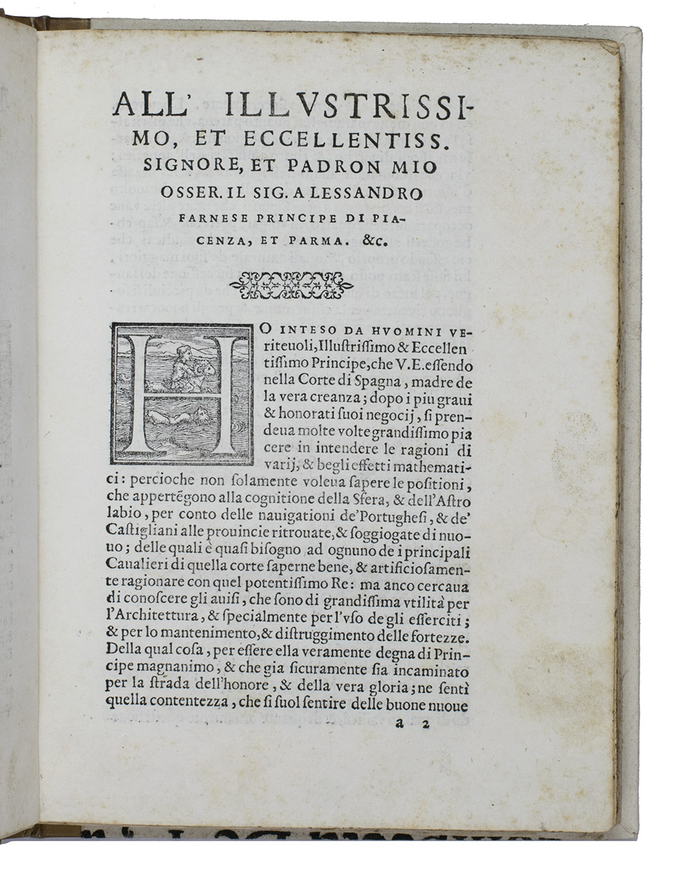 Binding with only some very small spots. Some foxing (particularly at the beginning and at the end of the book), spots and small stains throughout, some leaves a little browned, some tears on the folding lines of the third plate (partly repaired), first two folding plates bound in upside down, edges of the folding plates slightly frayed in some places. Overall in good condition. A rare and important, though little-known, work. Adams C1280; BM STC Italian, p. 165; EDIT16 10827; Honeyman 661; OPAC SBN BVEE003725; Riccardi I, 339-440; USTC 821629.