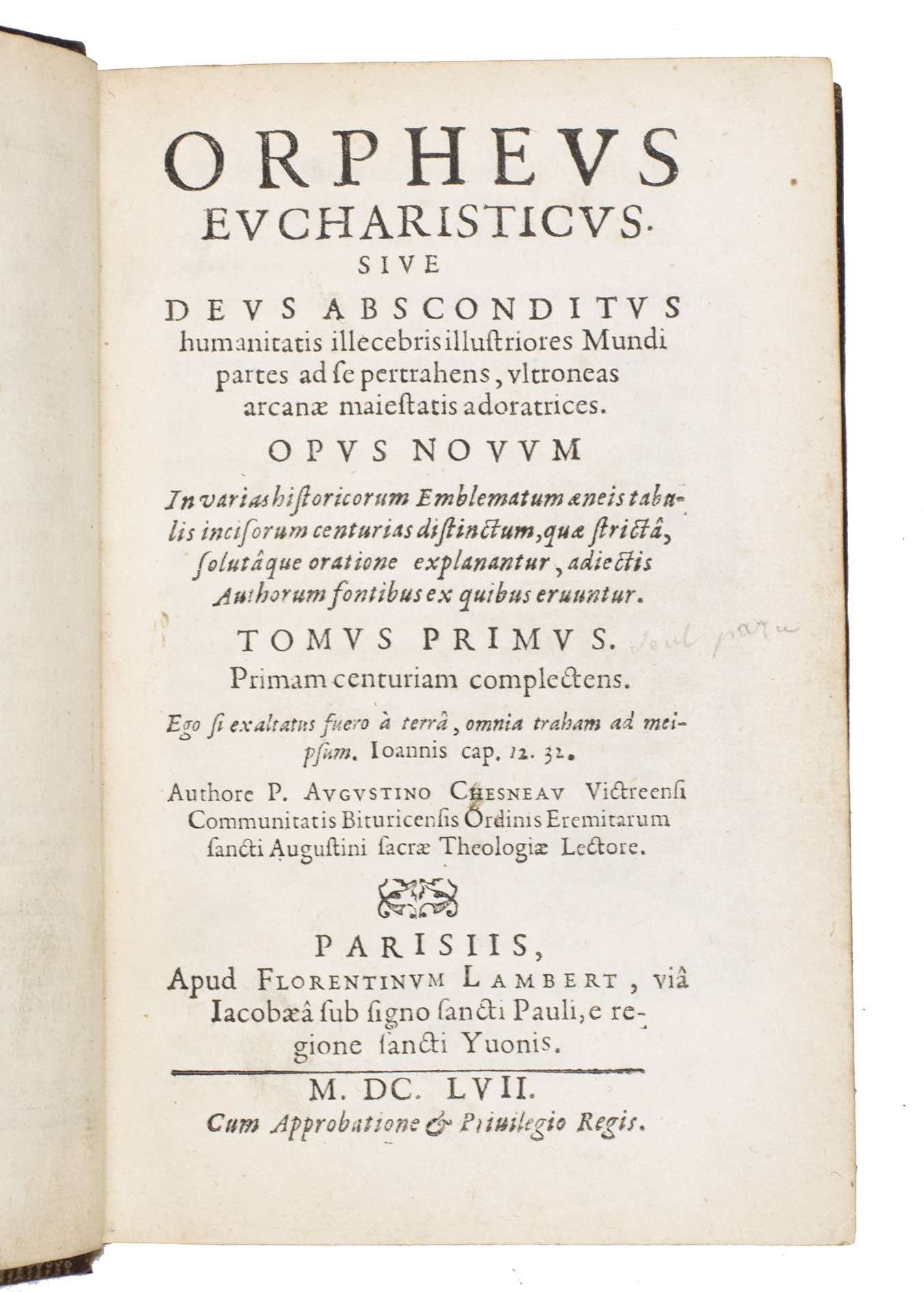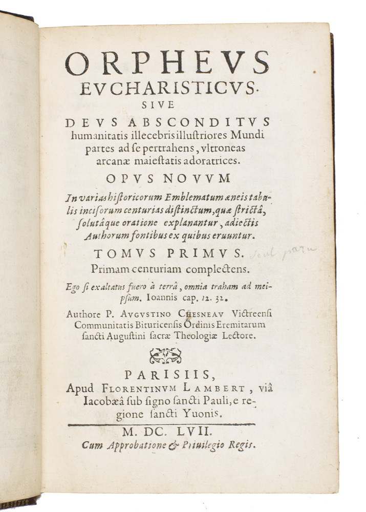 Orpheus Eucharisticus ... Tomus primus [all published].