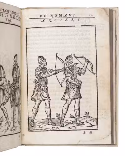 The woodcut illustrations are important for the history of Roman warfare: establishing encampments (including the large plan of a camp), food and wine supply, marching, various soldiers (Cornificeri, centurions, decurions, signiferi) and their uniforms and helmets, sieges, fighting equipment, exercises, etc. and for the Roman baths: strigiles, innerside of thermae, Roman bathtubs, Romans exercising, etc.