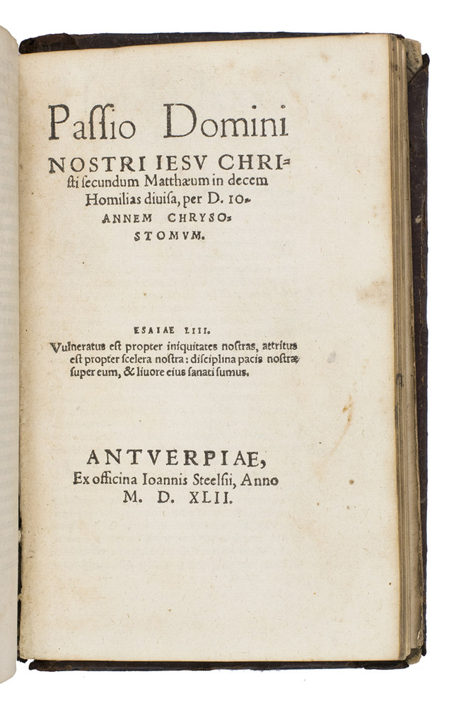 With: CHRYSOSTOM, John. Passio Domini Nostri Iesu Christi secundum Matthaeum in decem Homilias divisa.