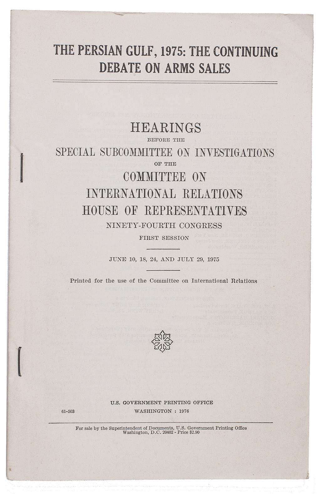 The Persian Gulf, 1975: the continuing debate on arms sales. Hearings before the special subcommittee on investigations of the committee on international relations, house of representatives, ninety-fourth congress, first Session. June 10, 18, 24 and July 29, 1975.