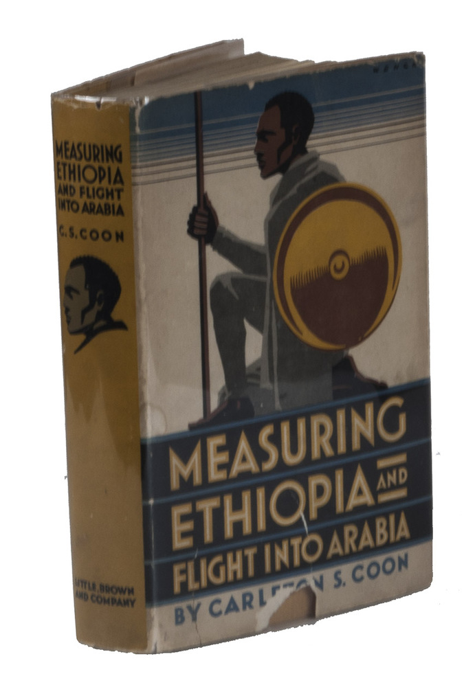 First edition of Carlton S. Coon's account of his experiences in Ethiopia and Arabia. From 1933 to 1934 he travelled through Ethiopia to conduct physical anthropological research, but after conflicts with the authorities he had to escape to Arabia. Coon states in his foreword that the purpose of the present work is a memoir, since it was not meant to "impress the public with our scientific findings, for, interesting as these results may or may not be, they are reserved for more formal publication", but simply to tell what he and two others did during the expedition. Carleton Stevens Coon (1904-1981) was an American anthropologist and professor of anthropology at Harvard University and the University of Pennsylvania, who spoke 10 languages. He made notable contributions to the fields of cultural and physical anthropology and archaeology. He was the author of multiple works, including highly controversial works on race, such as The origin of races (1962). His theories on race were widely disputed in his lifetime and are considered pseudoscientific in modern anthropology.