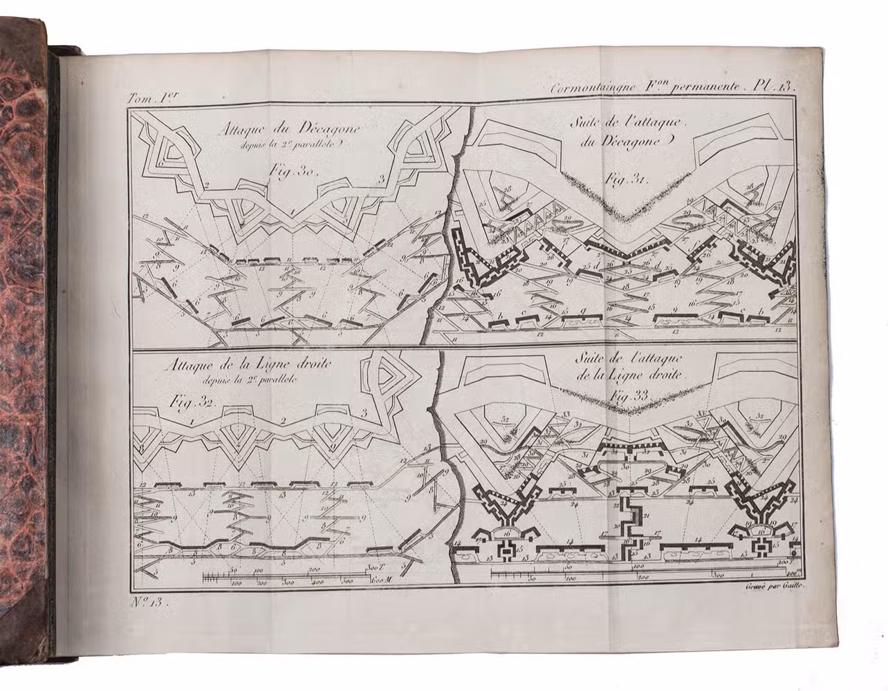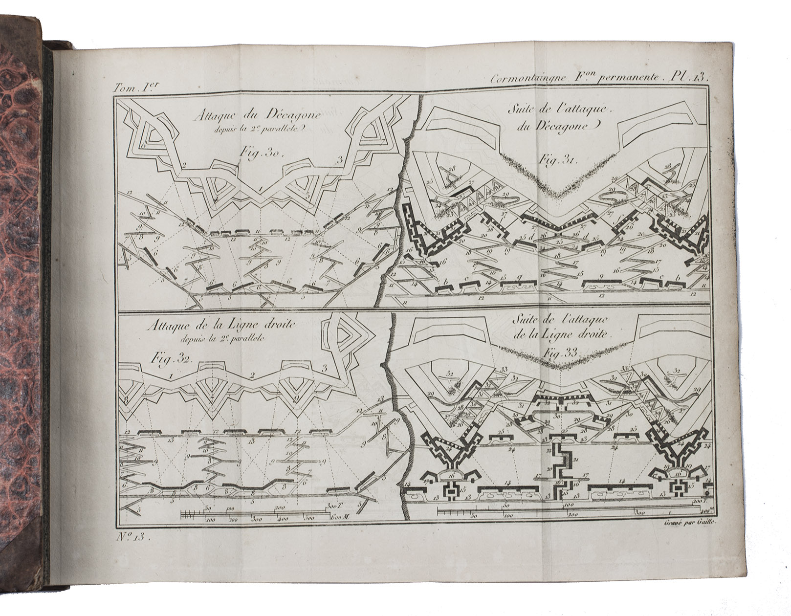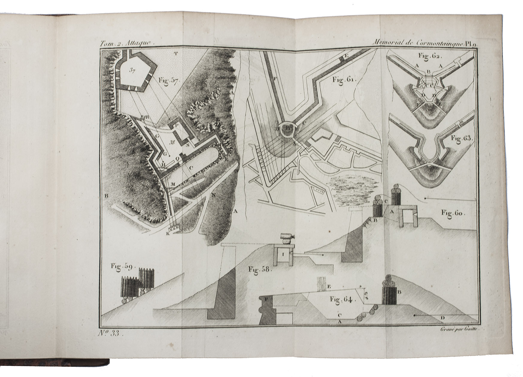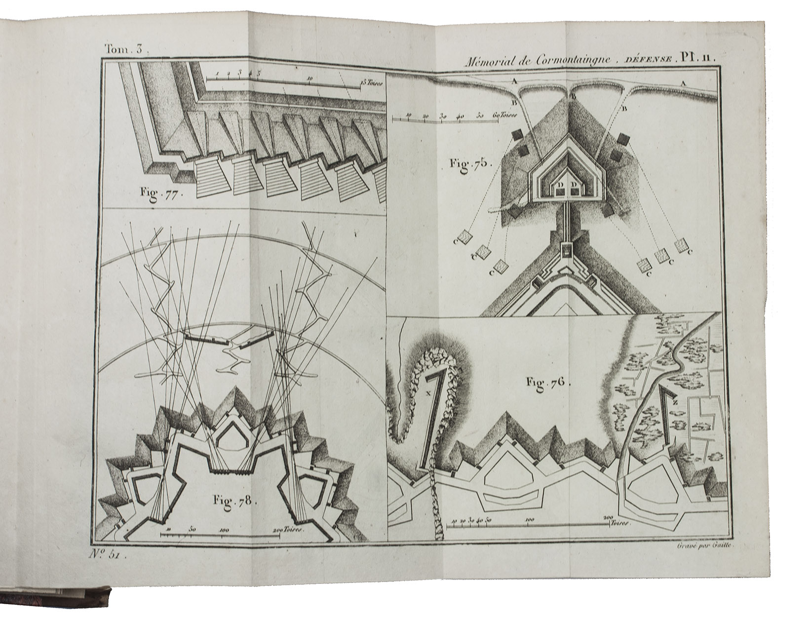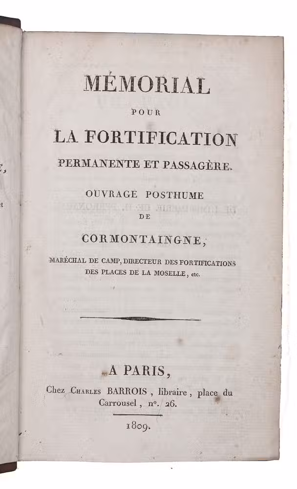 The complete posthumous works of Louis de Cormontaingne (ca. 1696-1752), the leading French fortifications engineer of his day and from 1748 Maréchal de Camp in the French army. The three volumes form a complete handbook of fortification, with the first devoted to the design and construction of permanent and temporary fortifications, the second to offense in siege warfare and the third to defence. All three are extensively and clearly illustrated. Cormontaingne joined the Corps du Génie less than a decade after the death of Sébastien Le Prestre de Vauban (1633-1707) and is regarded as his successor, establishing his reputation with the fortifications of Metz in 1728. Vauban completely dominated French and to some degree international fortification for decades after his death, but offensive tactics steadily gained ground while defensive tactics remained largely the same, so Cormontaigne introduced some improvements into Vauban's methods.