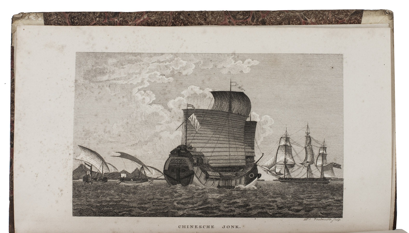 Haarlem, widow A. Loosjes (colophon: Amsterdam, printed by H. Bakels), 1823-1825. 3 volumes. 8vo. With 3 line-etched frontispieces, 3 full-page plates (2 line-etched, 1 hand-coloured aquatint with line etching), and a folding map (44 x 55.5 cm), hand-coloured in outline. Contemporary mottled half calf, gold-tooled spine. XXII, 332, [2]; LXXII [= LXXIV], 434, [1], [1 blank]; LX, 538, [2] pp.
